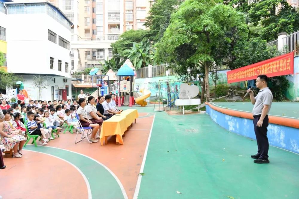 ▲玉林奥园幼儿园园长在托管班开班仪式上讲话