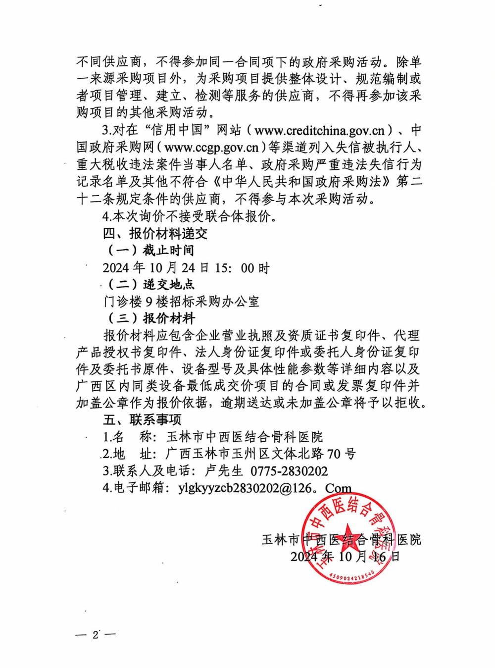 玉林市中西医结合骨科医院除颤仪采购项目询价公告