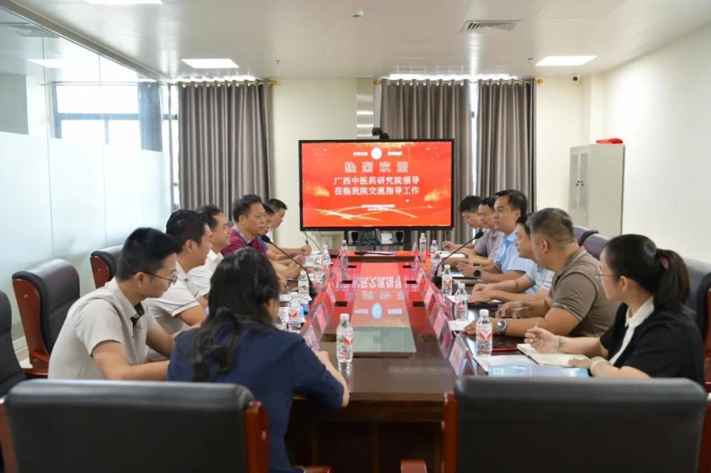 为加强科研院所与医院的科技业务合作,进一步拓宽合作领域,10月10日,广西壮族自治区中医药研究院副院长邱宏聪一行6人莅临我院进行了深入调研,旨在就医疗机构制剂研发、项目联合申报等工作展开探讨交流,以推动院内制剂成果的有效转化。我院唐继仁院长、副院长李开静、医务科副科长梁周、院办副主任钟东梅、科研科科长何科、药剂科副科长虞达欢等共同出席座谈会。
