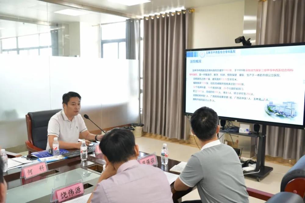 我院医务科副科长梁周从我院成立之初、患者来源、骨科特色治疗优势、医院未来发展策略、院内制剂疗效及口碑等方面情况作了介绍。