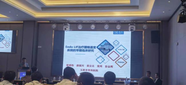 ◆唐福兴医师在大会上介绍梁博伟副院长的关于Endo LIF治疗腰椎退变疾病的早期临床研究成果