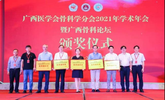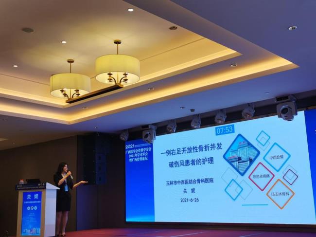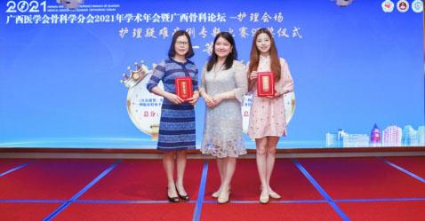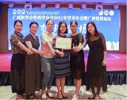 我院荣获“2021年广西医学会骨科学分会学术年会优秀组织奖”和“护理疑难病例专题比赛一等奖”两个奖项。我院重症医学科护士长关妮代表我院护理团队,以稳健的台风,通过对开放性骨折并发破伤风患者在治疗护理过程中存在的疑难问题及疑点进行循证,制定个性化护理方案应用于实践取得成效的经过,采用图文并茂的PPT进行详细的阐述,获得了专家评委及现场参会代表的高度好评,在42个案例中脱颖而出,勇夺本次比赛的一等奖。一直以来,我院护理部注重患者安全管理,常组织院级疑难病例讨论,护理业务查房。护士在工作中为了解决病例存在的问题和疑点,查阅资料循证,从而拓宽了知识面,培养了敏锐的病情观察能力,提高了理论联系实际的科学思维和分析、判断能力以及解决问题的能力。此次获奖,也是对我院护理工作的充分肯定。此次学术会议展示了我院骨科取得的学术成果,彰显了我院骨科和护理团队在省内的学术地位和影响力,为今后我院骨科团队发扬团结、担当、奉献的精神,以更加宽广的学术视野,更加进取的创新风貌向着更高的节点迈进。站在“两个一百年”的历史交汇点上,相信玉林骨科人将从百年历程中汲取智慧和力量,以磐石的信念、高远的志向、昂扬的斗志、饱满的热情,推动学科高质量发展,努力在新百年创造新辉煌。撰稿:教务科、护理部、髋关节一科后期编辑:宣传科