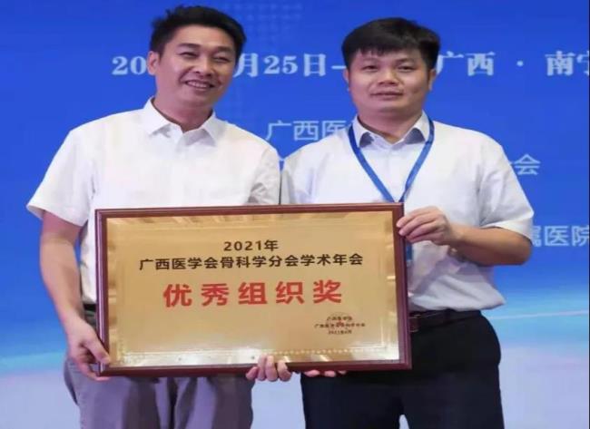 近日,由广西医学会骨科学分会主办的2021年骨科学年会暨广西骨科论坛在广西南宁召开。本次会议邀请到区内外多位著名专家教授进行授课,大会设立了脊柱、关节、创伤、运动医学和护理分会场,通过学术报告、主旨演讲、专题讨论等多种形式,全面解读骨科领域的国内外学术前沿进展,通过线上线下相结合的形式为各位与会者提供与国内外著名专家之间互动交流、分享经验的机会,现场学术氛围浓厚。值得一提的是,玉林市中西医结合骨科医院骨科各亚专科医师和护理团队受邀参加会议,7位医护人员受邀在大会上发言,并荣获“2021年广西医学会骨科学分会学术年会优秀组织奖”和“护理疑难病例专题比赛一等奖”两个奖项。充分展现了我院骨科和护理团队积极向上的精神面貌和扎实的学术水平。 ◆玉林市中西医结合骨科医院院长邹崇祺教授率队参会
