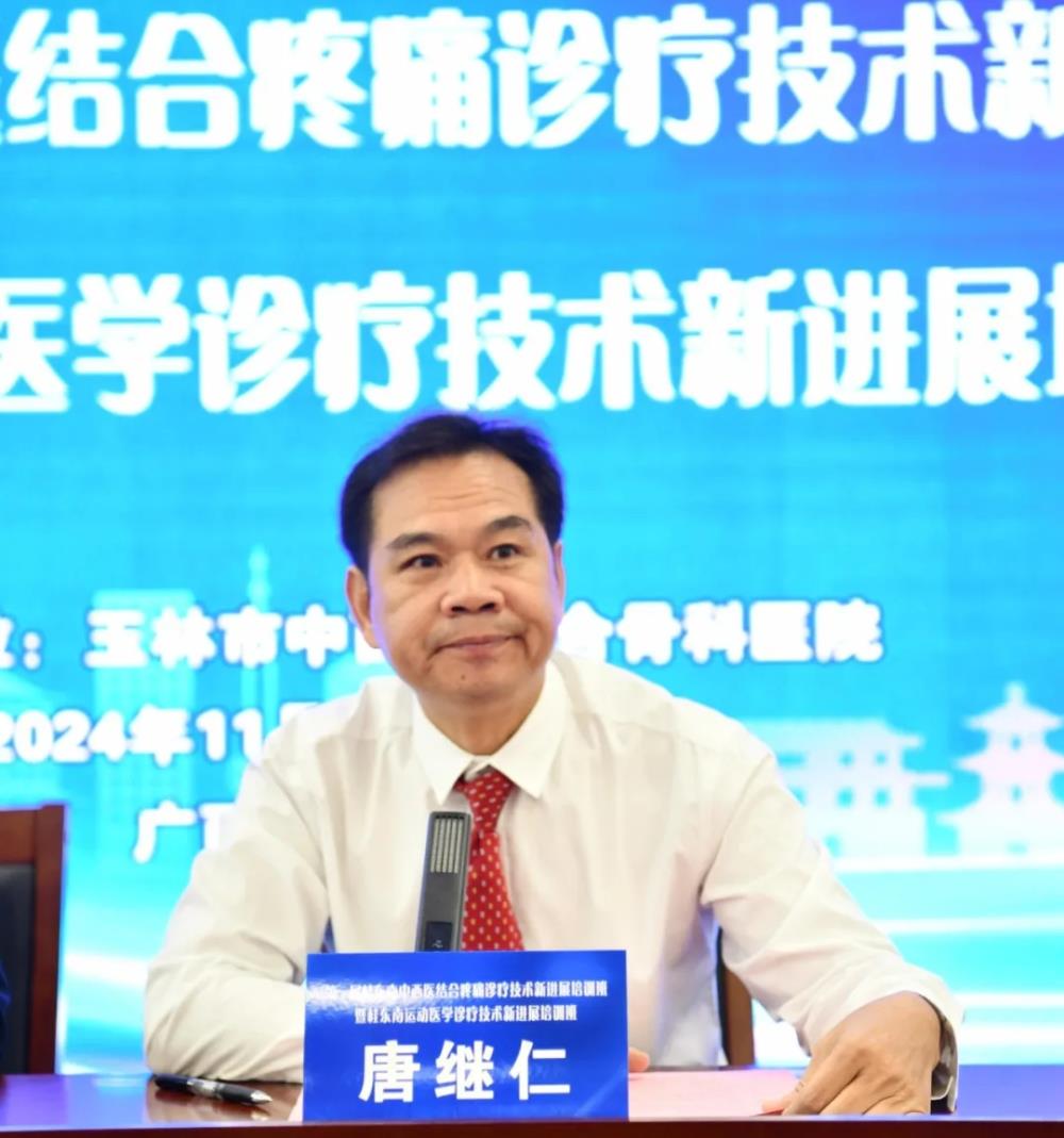 玉林市中西医结合骨科医院唐继仁院长在致辞中表示,此次培训班是提升区域医疗水平、造福群众健康的一次重要举措,医院将以此为契机,积极搭建区域医疗技术交流平台,全面提升疼痛诊疗和运动医学诊疗技术水平。