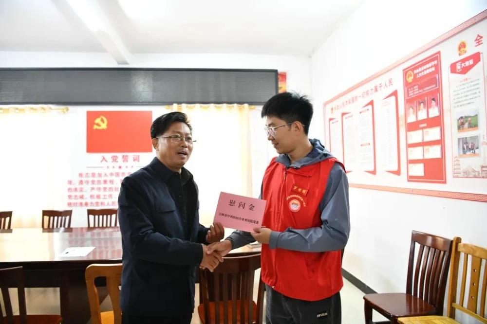 【关心关爱驻村第一书记与工作队员】为进一步加强对驻村干部的关心关爱,激励驻村一线干部凝心聚力推动乡村振兴工作,医院领导班子成员与我院派驻容县容州镇五一村第一书记何继华、高峰镇新李村第一书记罗世辉和驻村工作队员谢秀强开展谈心谈话,详细了解他们的工作开展情况、生活状况以及面临的困难和问题,为他们送上了慰问金,对他们的辛勤付出予以充分肯定,勉励他们要继续发扬艰苦奋斗精神,扎根基层、服务群众,为村民多做好事、多办实事,协助村“两委”做好村级各项工作,为促进农村经济发展增添新动力。