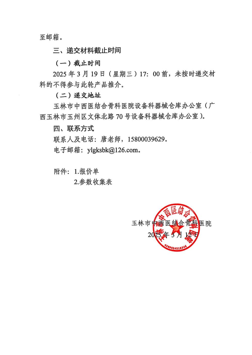 玉林市中西医结合骨科医院关于无创连续血压及心输出量监测系统和血气分析仪的市场调研问询公告
