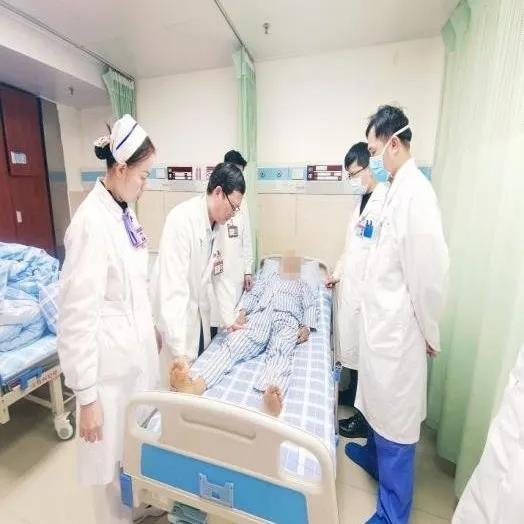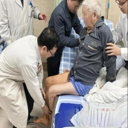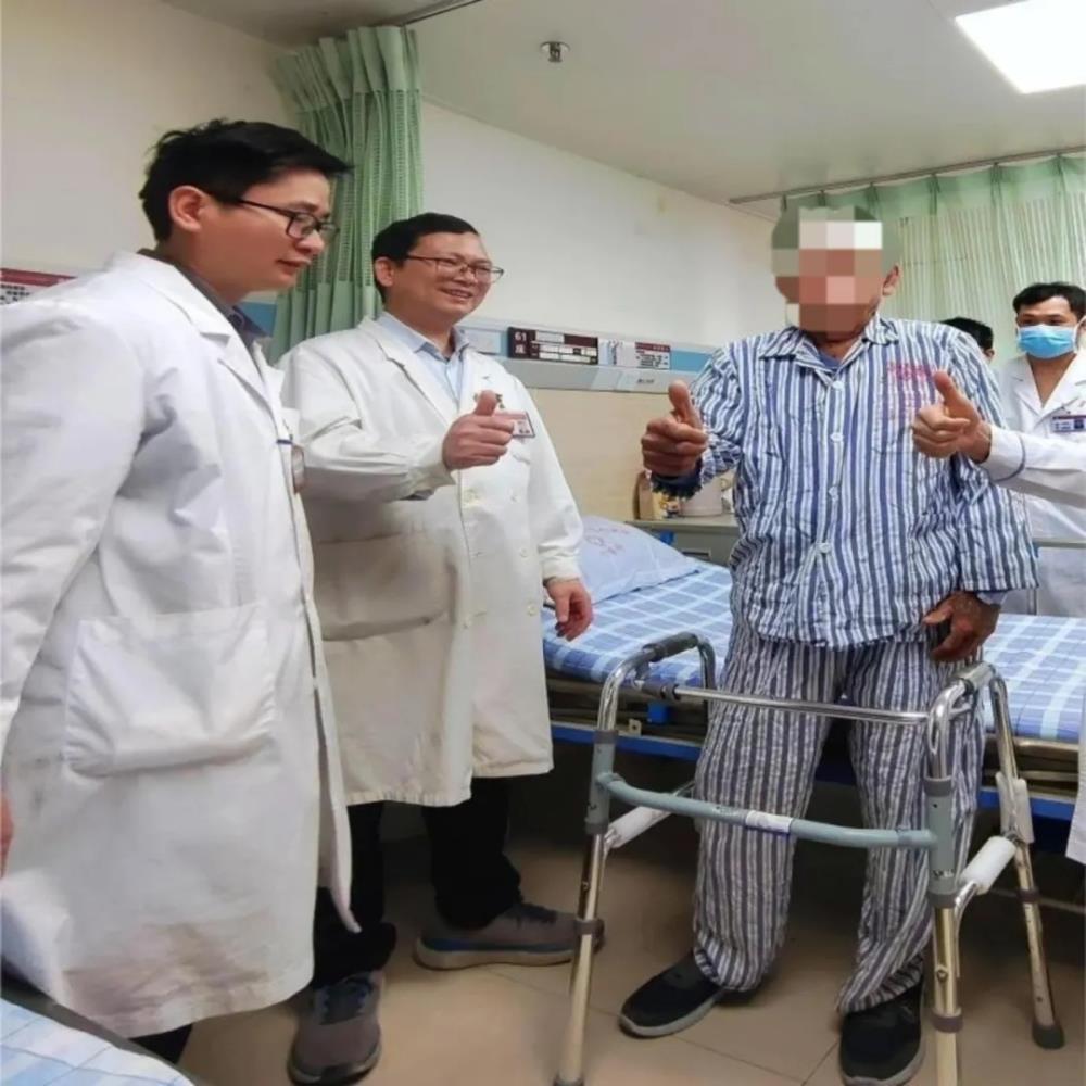 术后第五天患者已自行柱助行器行走,并对我们的技术和服务予以高度的赞赏——“开心满意的给我们竖起大拇指”!