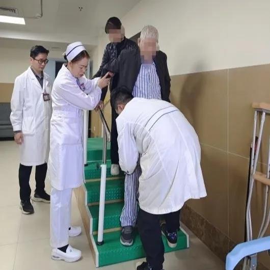 术后第三天,医护康联动,指导患者在我科仿真居家环境“居家防跌模拟实训室”进行康复训练,提高患者训练体验感,进一步加速患者康复。