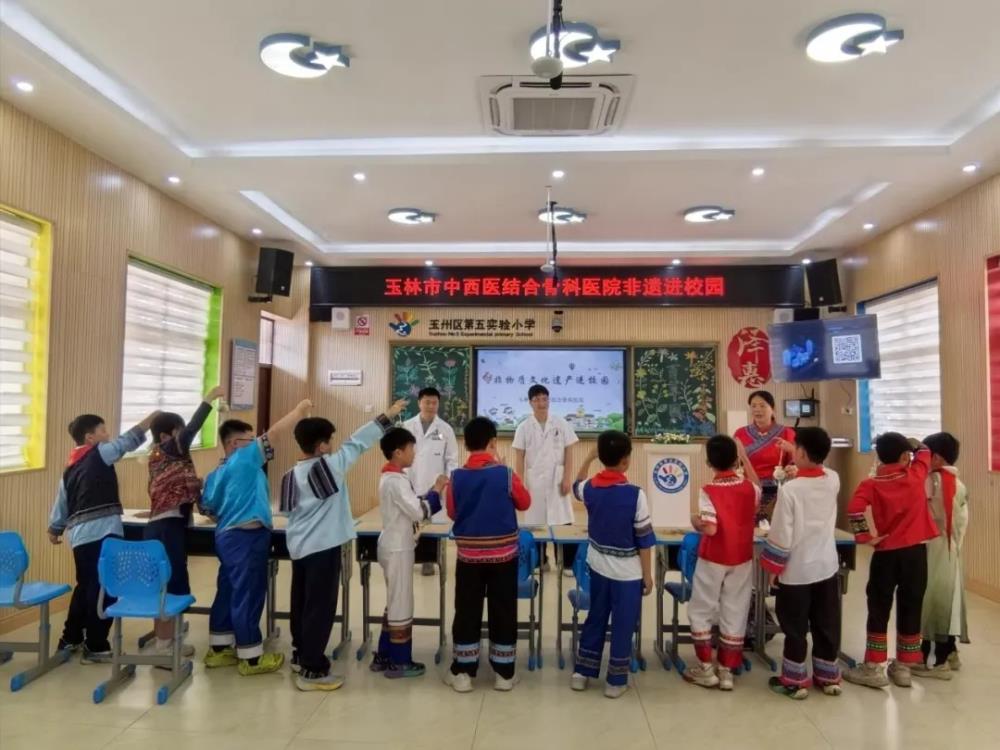 骨科医院药剂科副主任中药师王小新为师生们带来了一场生动的"桂十味"道地药材专题讲座。通过讲解和互动问答,让同学们深入了解广西特色中药材的独特价值。玉州区第五实验小学的同学们还表演了中医药主题童谣和八段锦,展现了学校将中医药文化融入素质教育的丰硕成果。