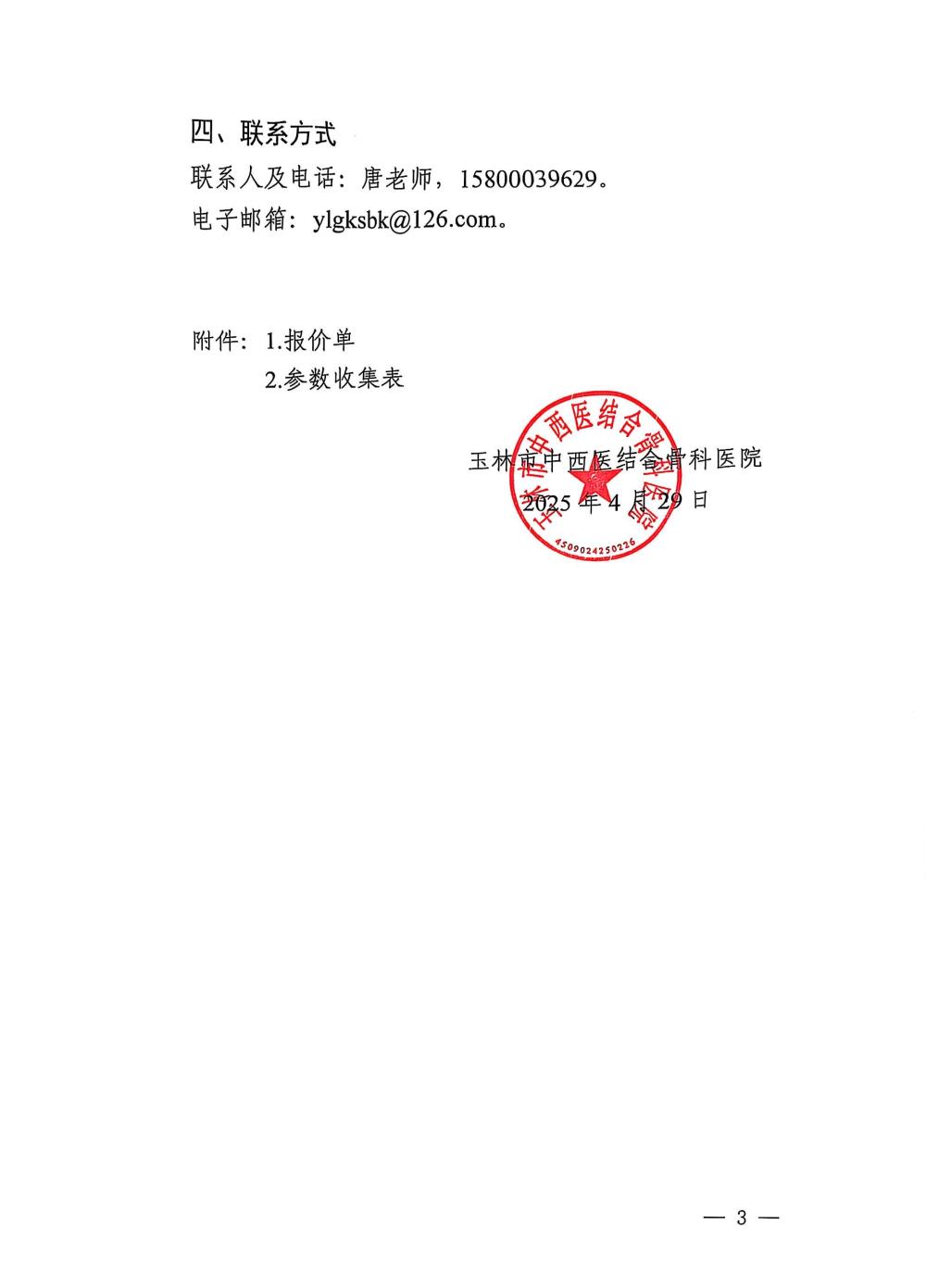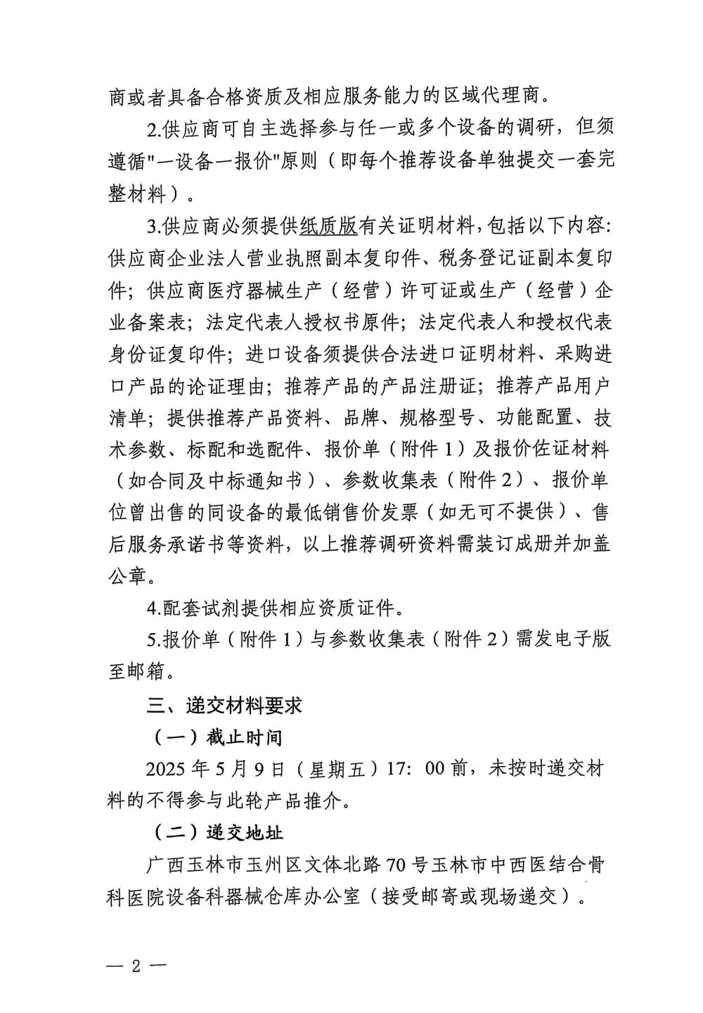 玉林市中西医结合骨科医院关于高端DR的市场调研公告