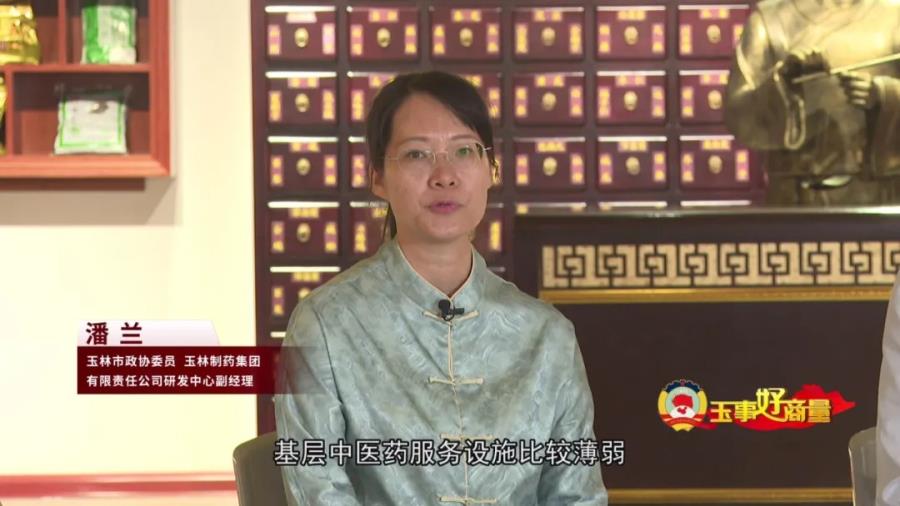 【主持人】通过观看刚才的这个短片,我们深刻地感受到了玉林中医药文化的深厚底蕴及其广阔的发展前景。近期,玉林市政协针对如何使中医药服务更加便民、利民、惠民的问题,开展了多次深入调研。接下来,就请各位委员来分析一下在调研过程中发现的具体问题。玉林市政协委员、玉林制药集团有限责任公司研发中心副经理 潘兰