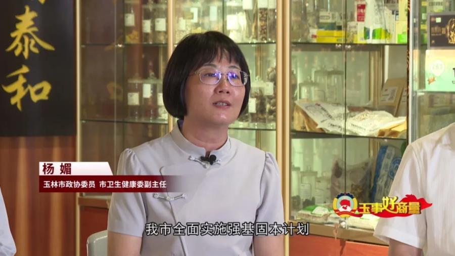 习近平总书记强调:“要做好中医药守正创新、传承发展工作,建立符合中医药特点的服务体系、服务模式、管理模式、人才培养模式,使传统中医药发扬光大。”近年来,玉林市委、市政府高度重视中医药事业发展,通过举办药博会、香博会等系列活动,健全中医药医疗服务体系,建立了全国第三大中药材市场和中医药健康产业园,打造“中国南方药都”,持续推动中医药高质量发展,为保护百姓健康发挥了重要作用。今天邀请到场的嘉宾是:玉林市政协委员、市卫生健康委副主任杨媚,玉林市政协委员、玉林制药集团有限责任公司研发中心副经理潘兰,玉林市政协委员、陆川县人民政府副县长崔小喆,陆川县政协副主席黄华柱,玉林市中医医院院长刘宇河,玉林市医保局副局长陈东,玉东新区人民医院副院长覃继波,玉州区城北街道社区卫生服务中心主任梁德粼,玉州区江滨社区居民朱慧英。