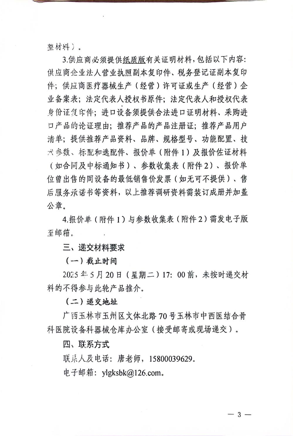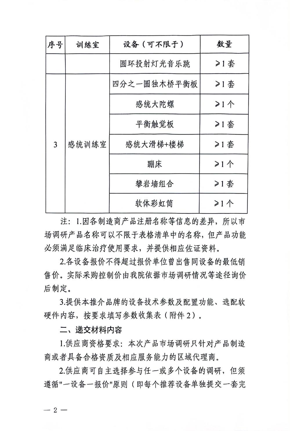 玉林市中西医结合骨科医院关于儿童康复设备一批的市场调研公告