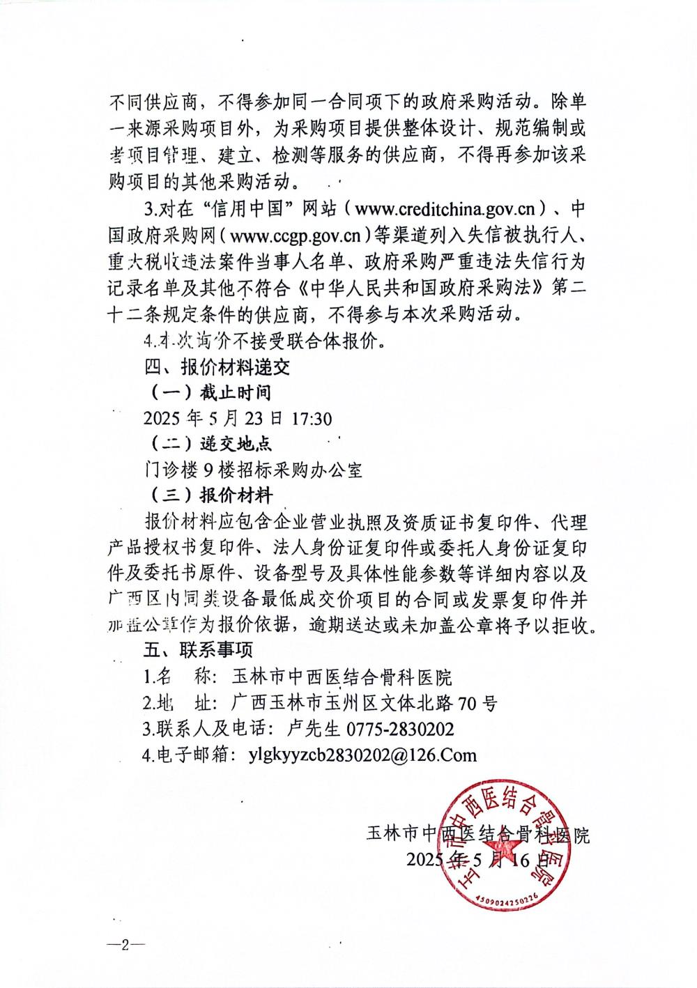 玉林市中西医结合骨科医院血气分析仪采购项目询价公告