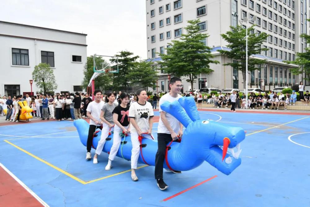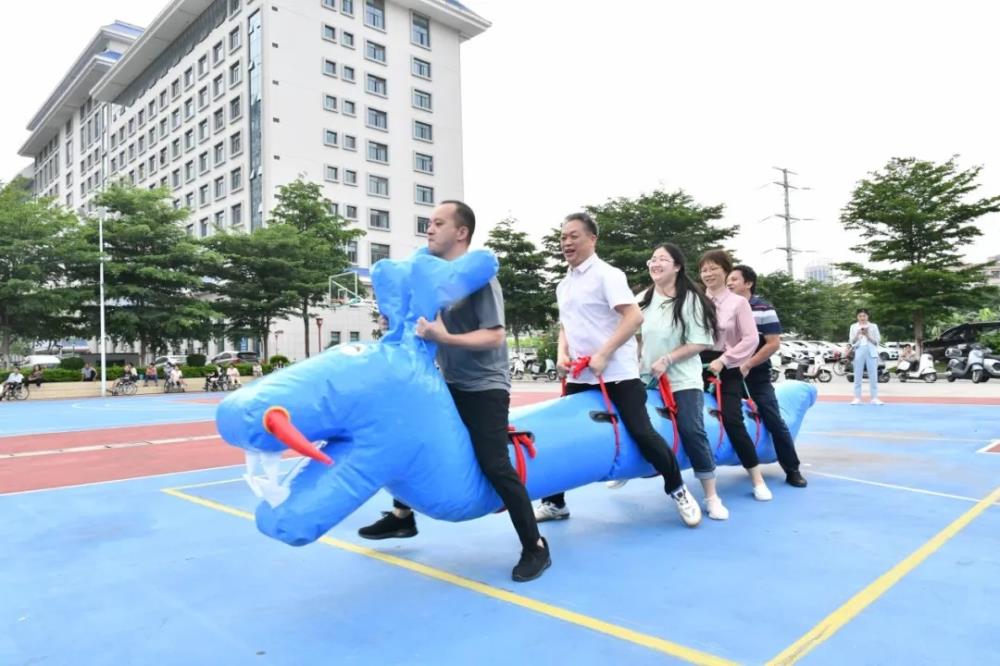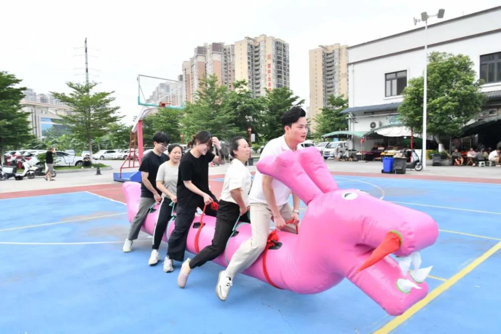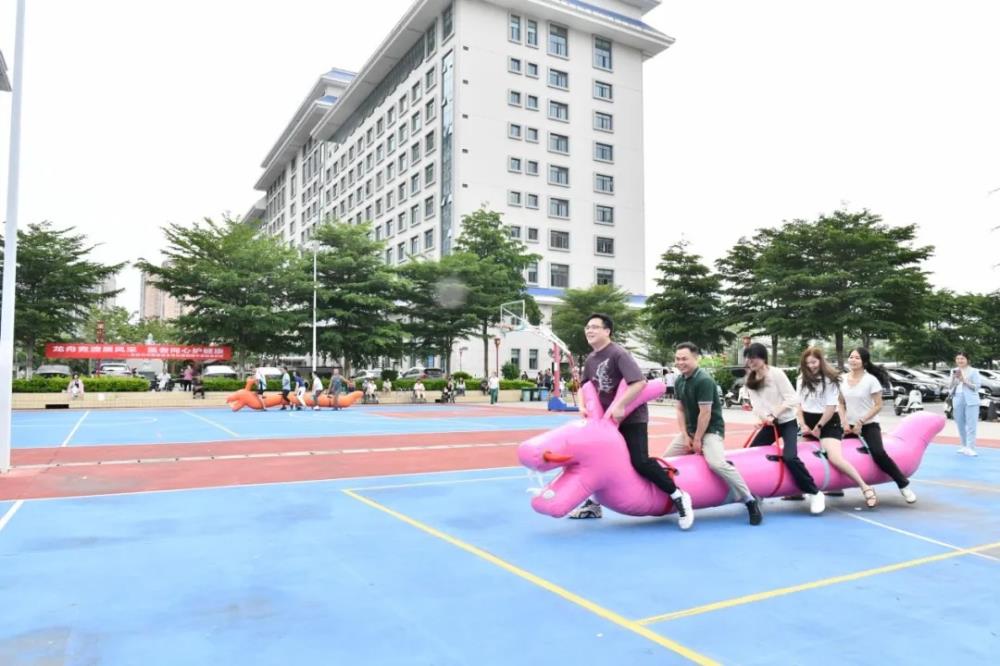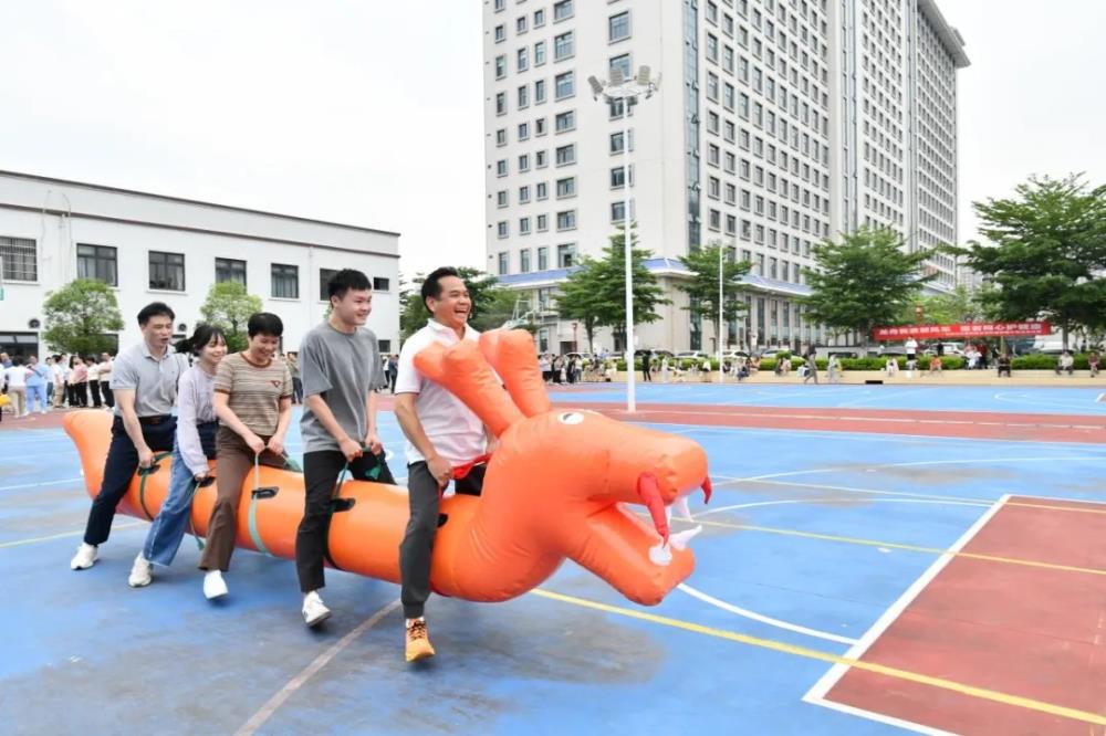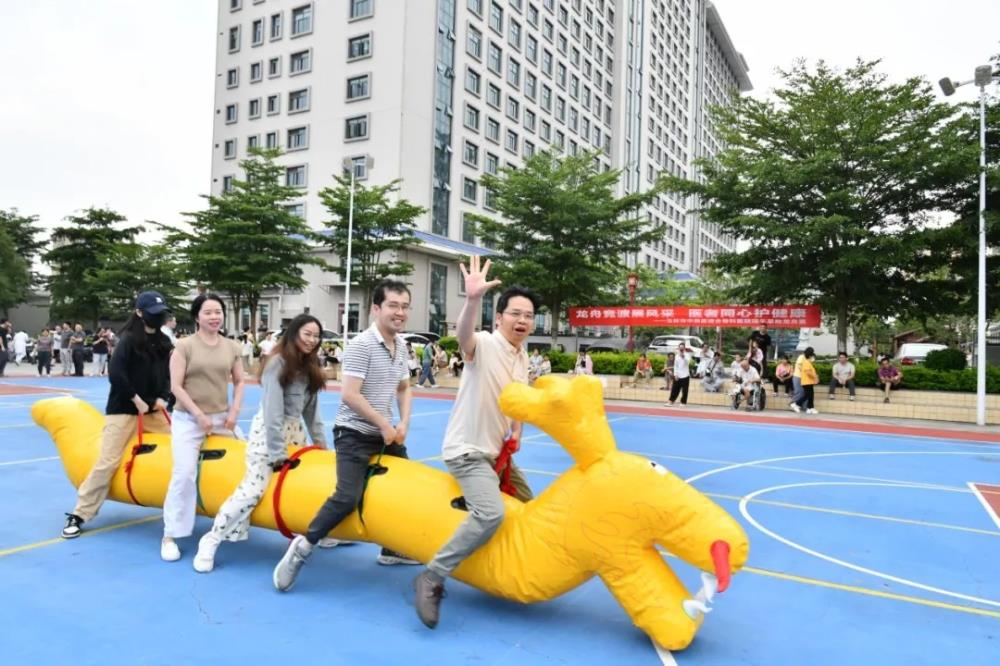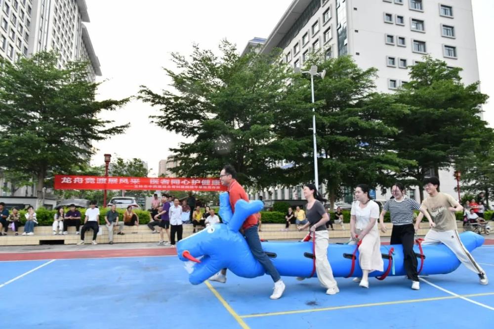 比赛现场,装饰着五彩绸带的 “旱地龙舟” 整齐排列。每支队伍由 5 名队员组成,大家双手紧握把手,摩拳擦掌、蓄势待发。随着裁判一声哨响,各队队员迅速进入状态,齐声喊着 “一二、一二” 的口号,步伐一致地向前冲刺。平日里奋战在救死扶伤一线的医护人员,此刻化身为活力四射的运动员,展现出截然不同的一面。