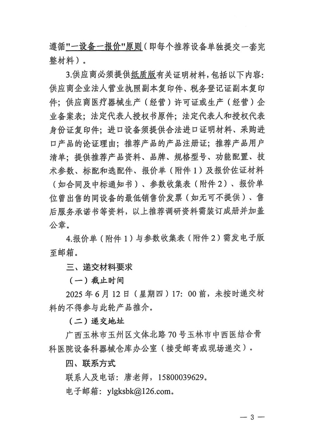玉林市中西医结合骨科医院关于全自动凝血分析仪的市场调研公告