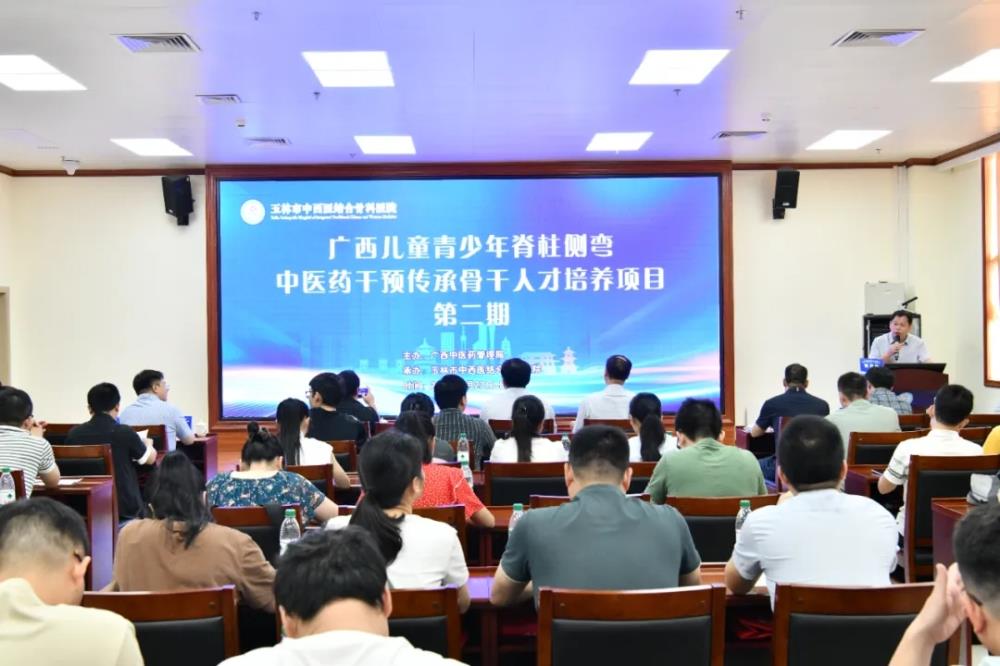 为加强我区儿童青少年脊柱侧弯中医药干预传承骨干人才培养,根据《自治区中医药局办公室关于开展 2025 年广西儿童青少年脊柱侧弯中医药干预传承骨干人才培养项目的通知》精神,由自治区中医药管理局主办,玉林市中西医结合骨科医院承办的2025年广西儿童青少年脊柱侧弯中医药干预传承骨干人才培养项目在玉林市中西医结合骨科医院举办,集中培训分5月19-23日及6月23-27日两期举行,来自全区各医疗机构60名儿童青少年脊柱侧弯中医药干预骨干人才培养对象参加培训。开班仪式由玉林市中西医结合骨科医院院长唐继仁主持。