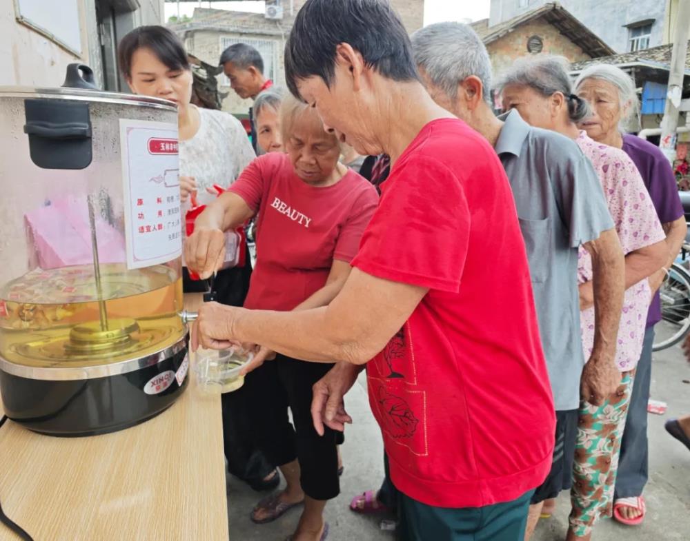 在活动现场,大家分工合作,一些党员为村民免费测量血压,进行中医体质辨识和健康评估,给予科学的饮食建议和用药指导,一些党员向村民展示广西道地药材"桂十味",免费发放医院特色制剂跌打酒、甘润茶,还有一些党员在进行生动的"健康素养66条"、夏季常见病的预防与治疗、慢性病管理以及中医药养生保健等全民健康素养知识讲解,受到村民的热情欢迎和点赞。据统计,当天共为100余名村民提供了健康咨询和检查服务。