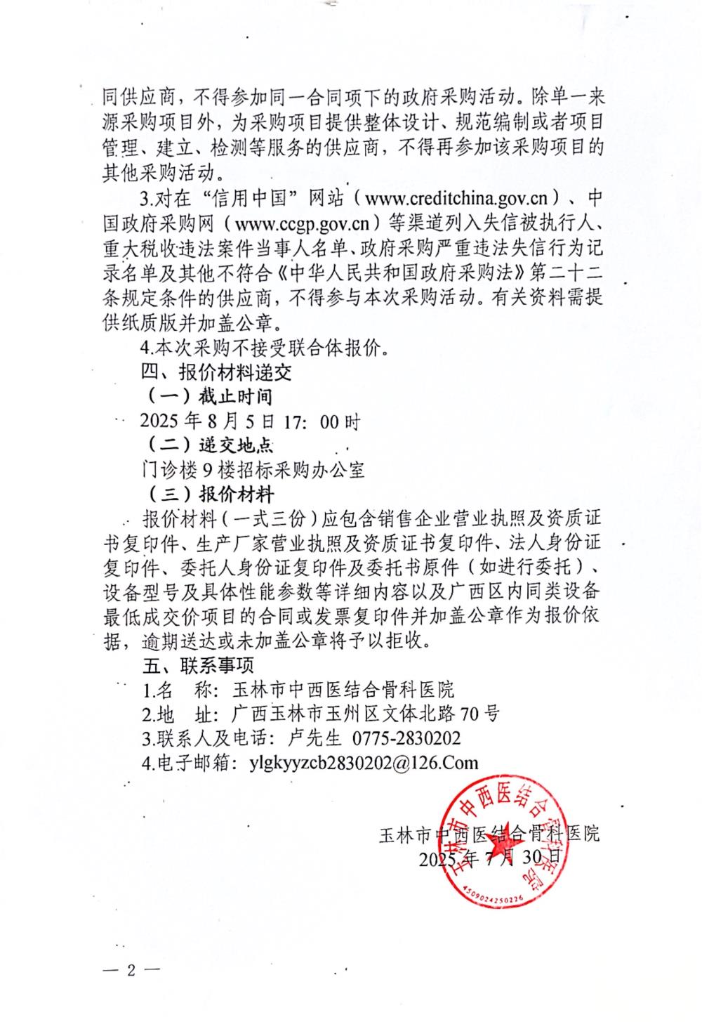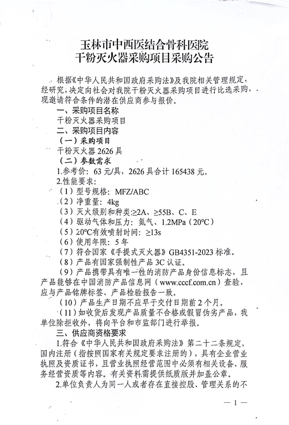 玉林市中西医结合骨科医院干粉灭火器采购项目采购公告