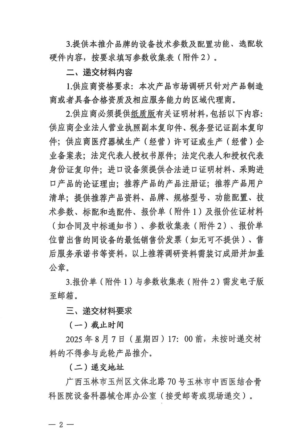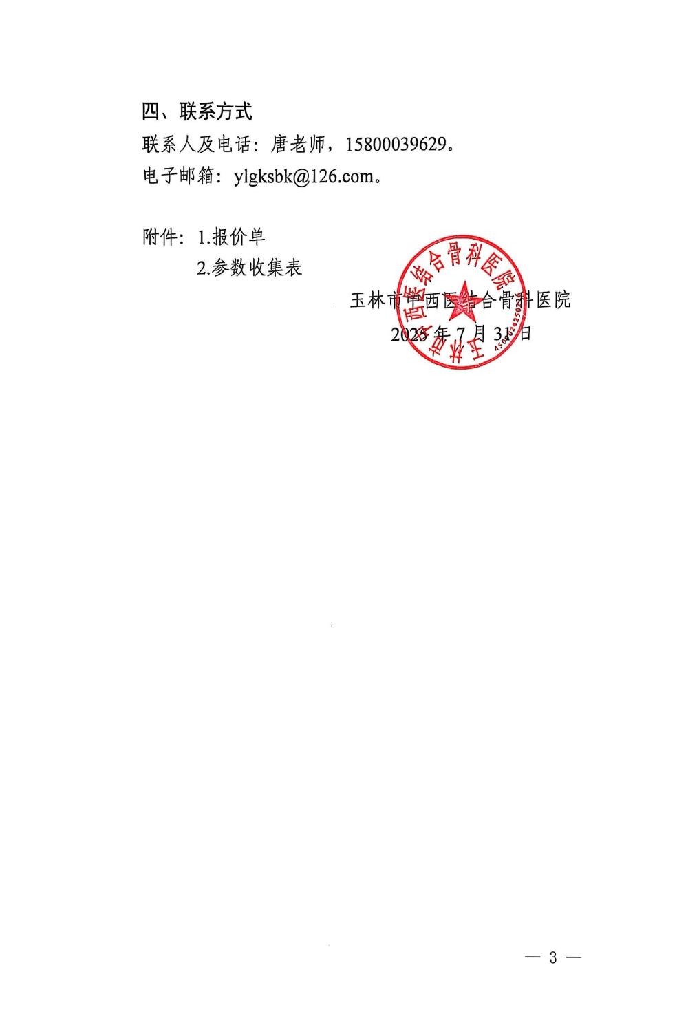 玉林市中西医结合骨科医院关于手术器械的市场调研公告