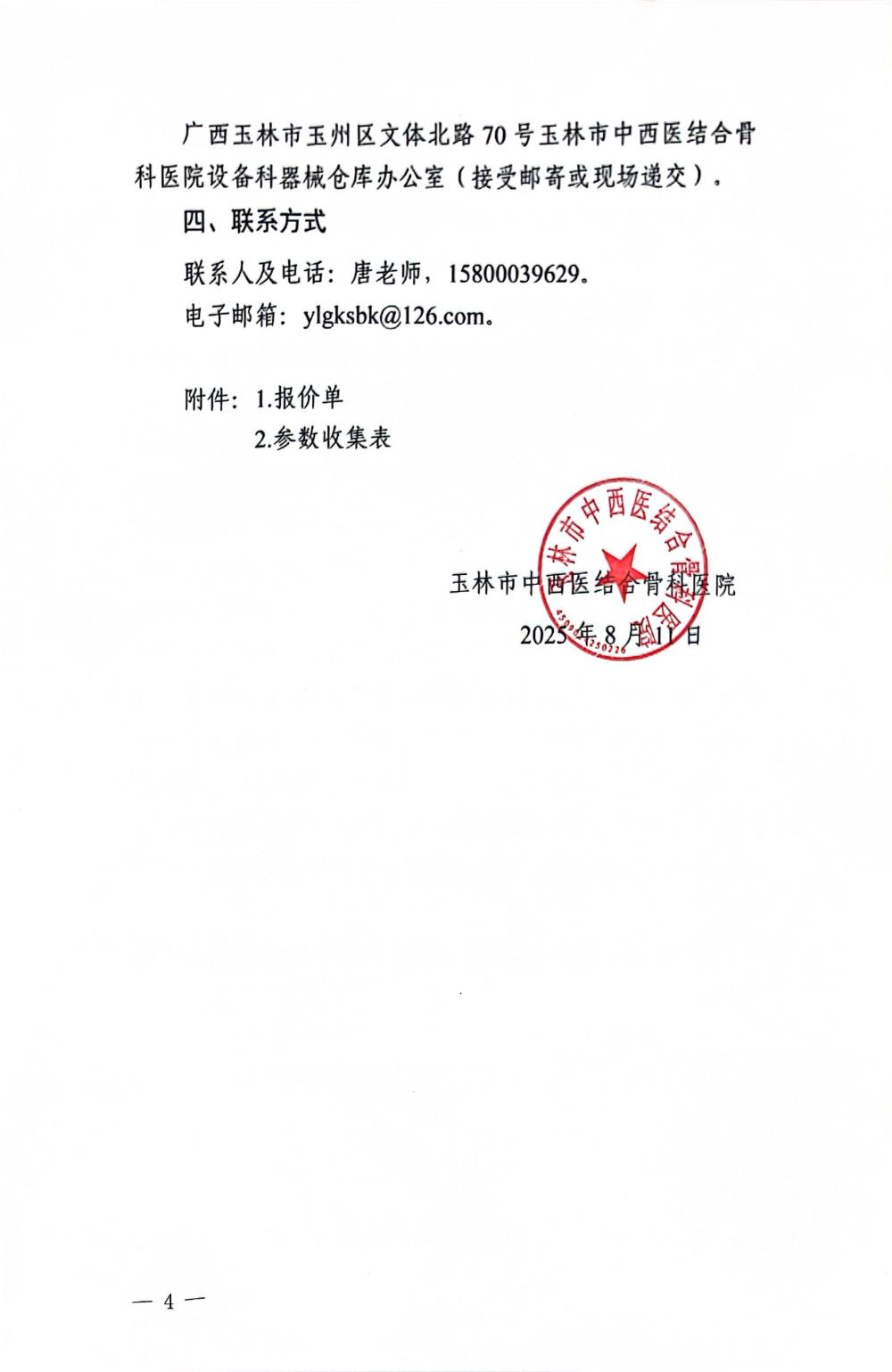 玉林市中西医结合骨科医院关于个人剂量及放射卫生防护检测服务的调研公告