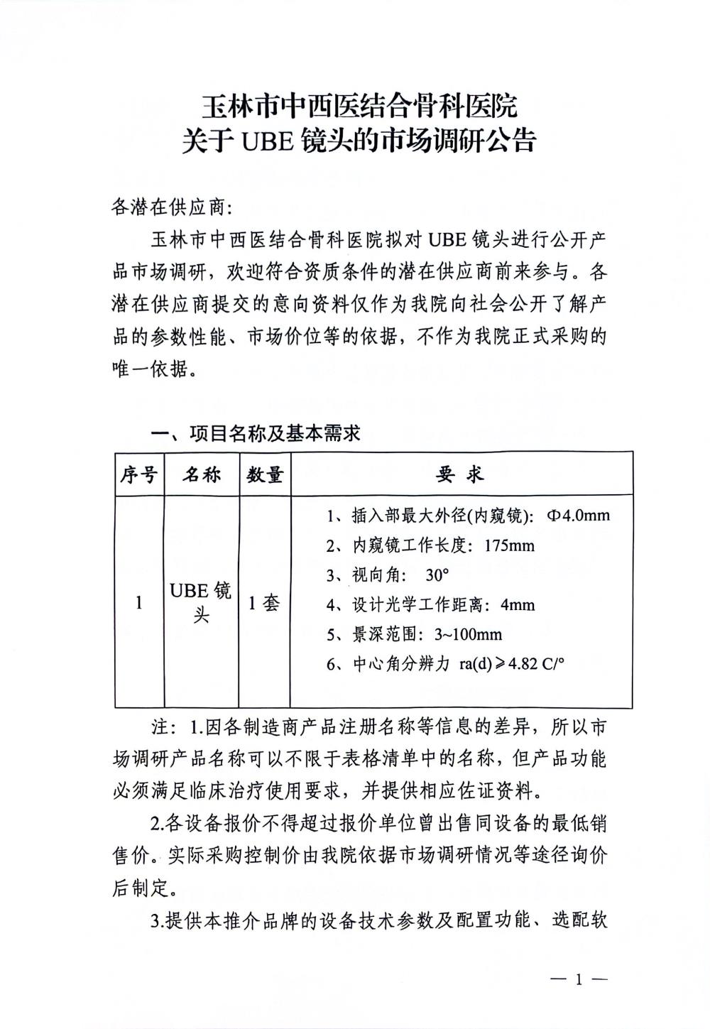 玉林市中西医结合骨科医院关于UBE镜头的市场调研公告
