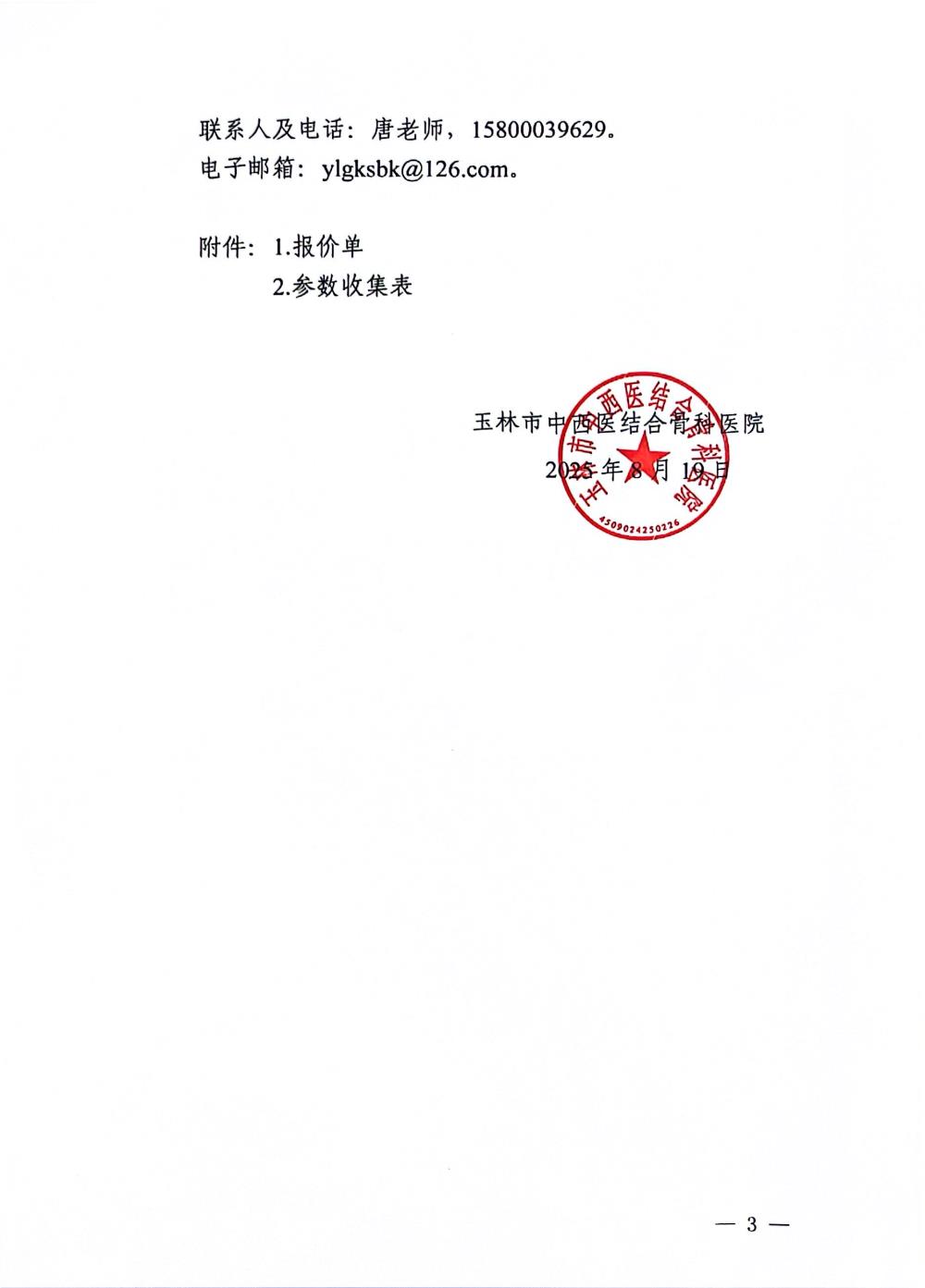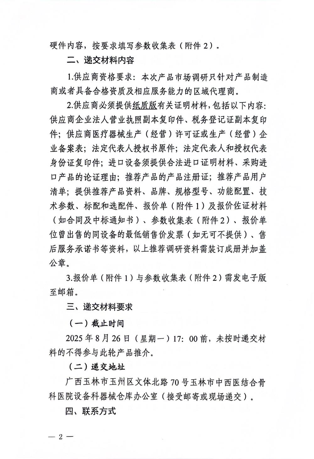 玉林市中西医结合骨科医院关于自动气压止血仪的市场调研公告