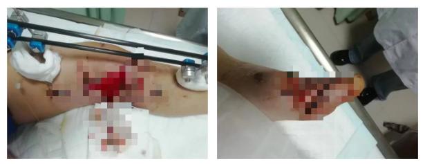2022 年 11 月 13 日清晨,一场突如其来的车祸,43岁的吴女士人生轨迹出现了重大转折。事故发生时,她左下肢传来剧烈疼痛,伴随肢体明显畸形与伤口出血,危急状况瞬间将她推入命运的困境。在当地医院,医护人员为吴女士紧急开展手术以挽救生命,手术内容包括急诊清创、负压封闭引流(VSD)技术覆盖创面,同时实施左股骨切开复位 + 骨水泥置入 + 外固定架固定术,以及动静脉探查术。然而,这场手术只是她后续治疗征程的起点 —— 术后,吴女士的伤口出现感染,病情愈发复杂严峻。为寻求更有效的治疗方案,她随后转往玉林市中西医结合骨科医院,期盼能在这里获得新的康复希望。