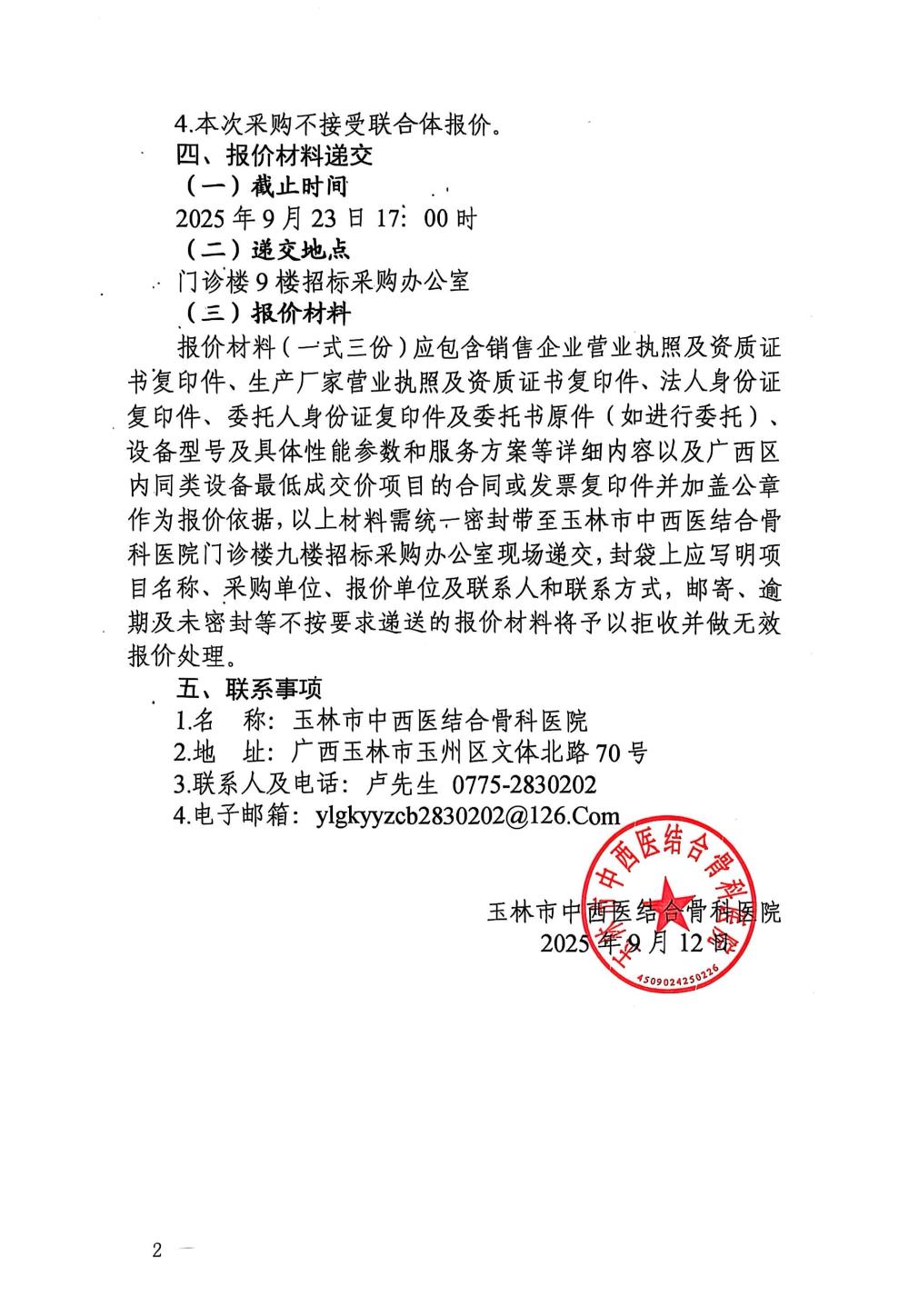 玉林市中西医结合骨科医院关于放射、B超、病理系统维保服务的市场调研公告