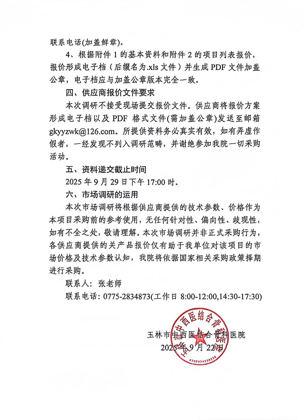 玉林市中西医结合骨科医院关于手外科手术器械包的市场调研公告