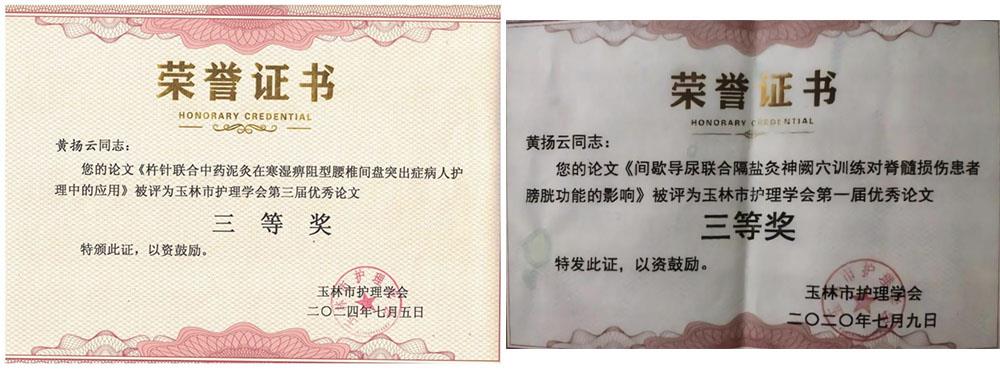 6. 2020年及2024年获玉林市护理学会优秀论文