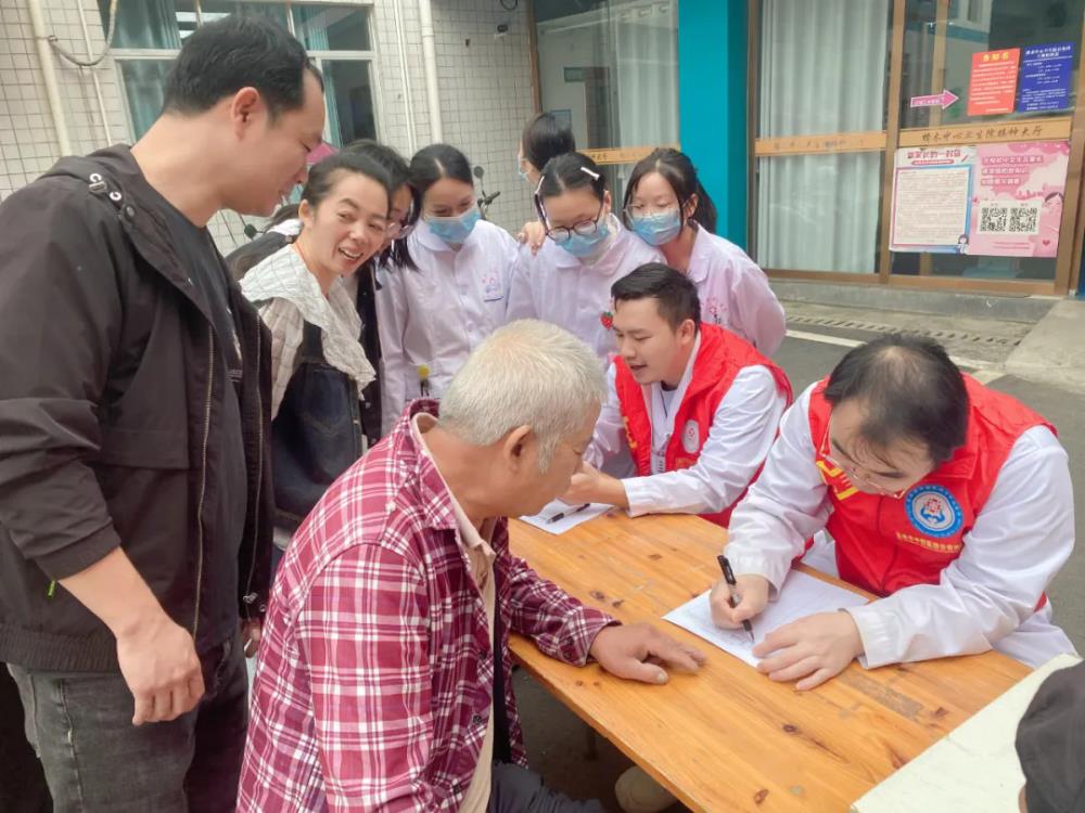 活动现场,矫形骨科医护团队免费为村民测血压,重点关注中老年人群、高血压高危人群,现场记录血压数据,为血压异常者提供饮食、用药指导,并建立简易健康档案。