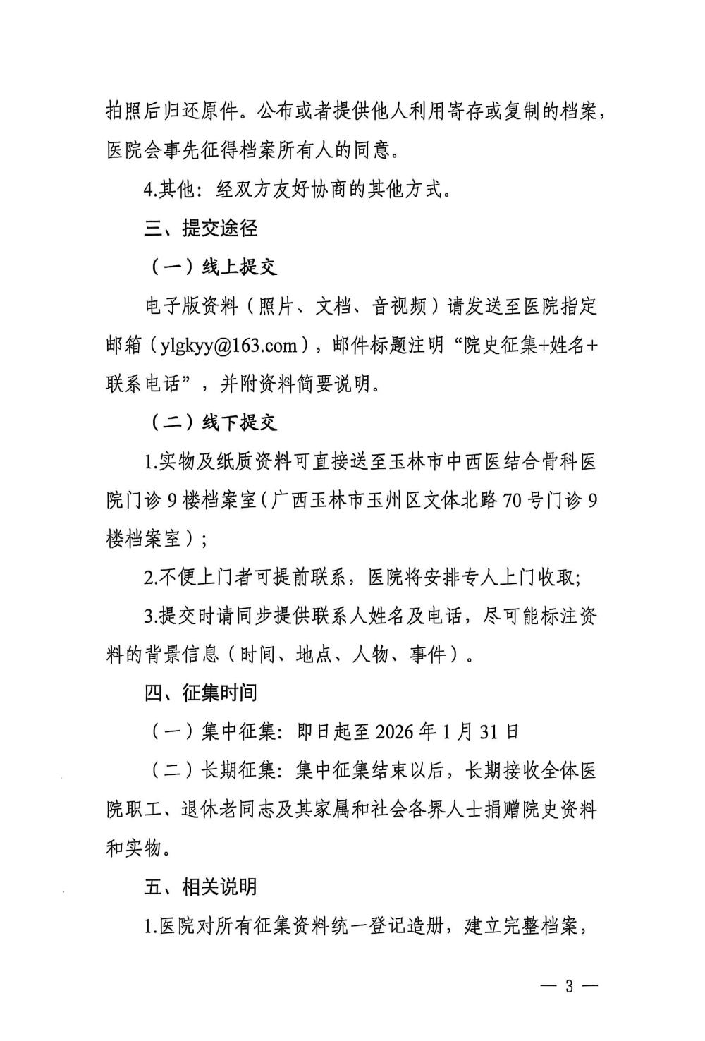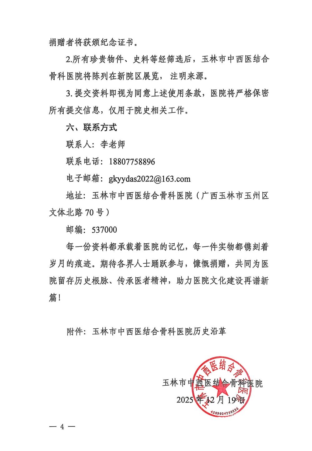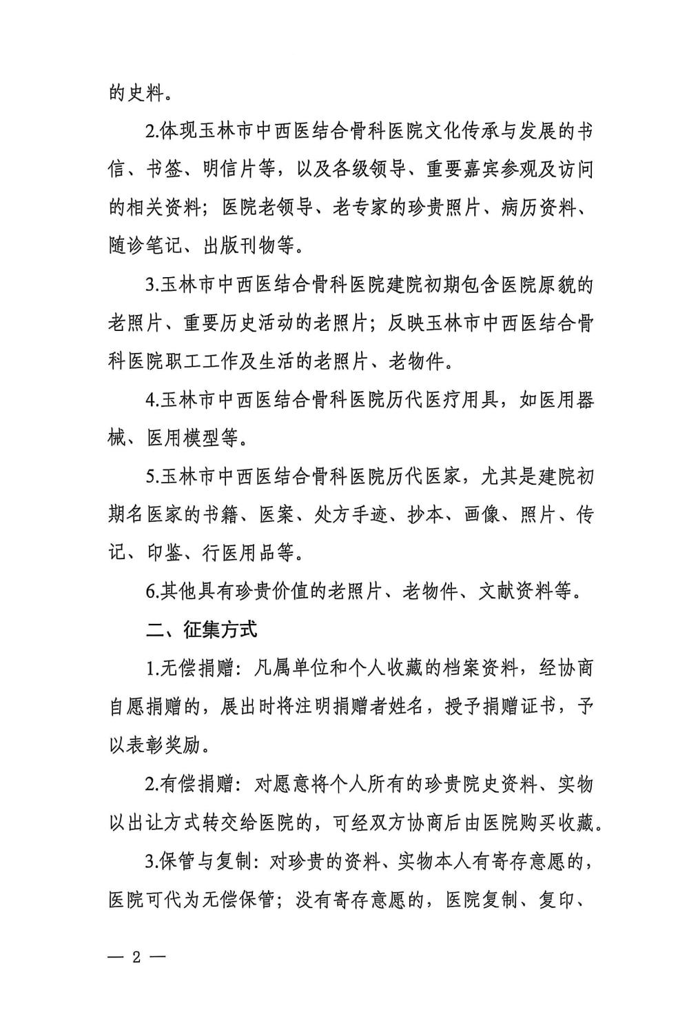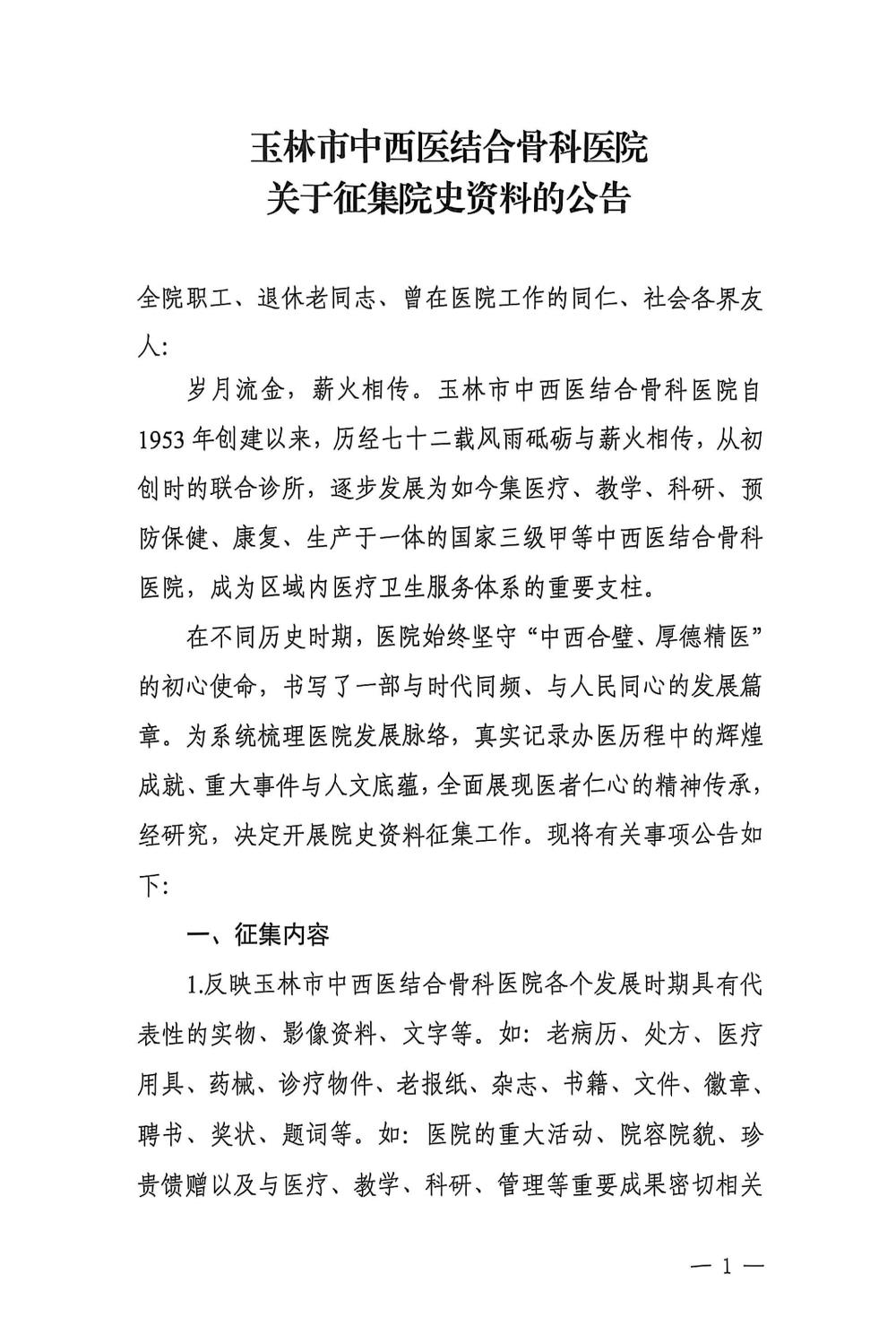 玉林市中西医结合骨科医院关于征集院史资料的公告