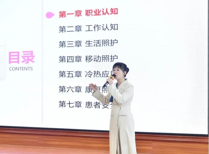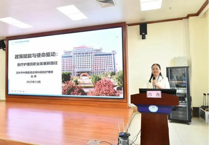 玉林市中西医结合骨科医院护理部主任吕燕以“政策赋能与使命驱动:医疗护理员职业发展新路径”为题授课,从国家政策视角剖析护理员职业定位,指出老龄化背景下该职业的广阔发展空间。
