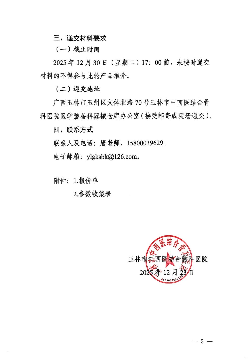 附件:1.报价单2.参数收集表