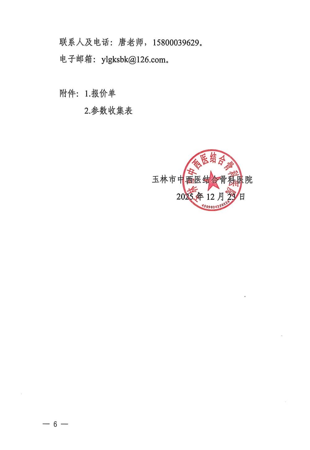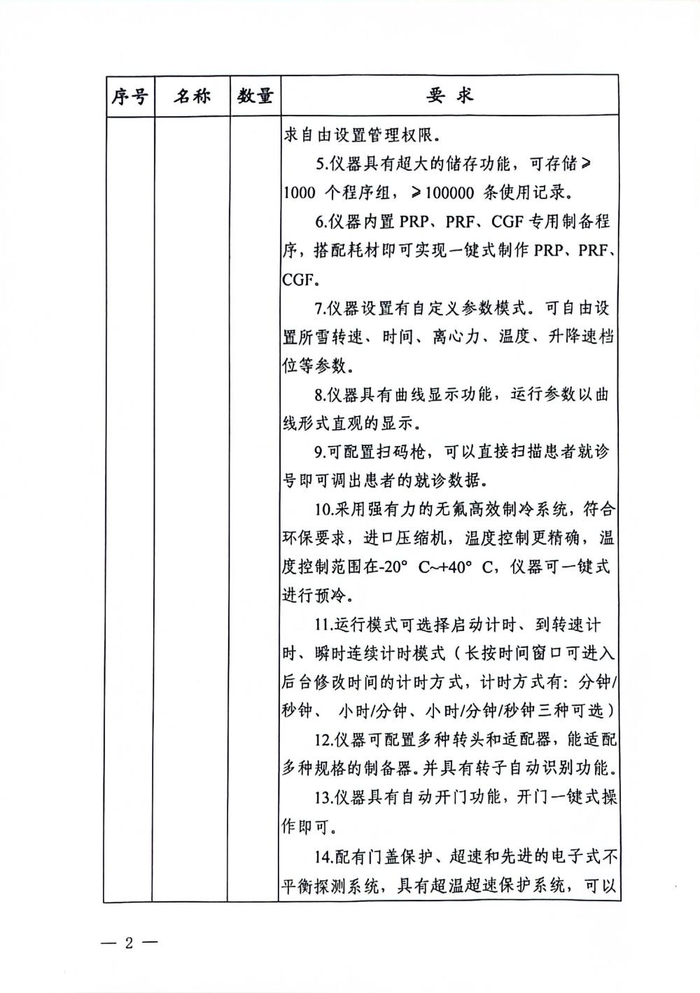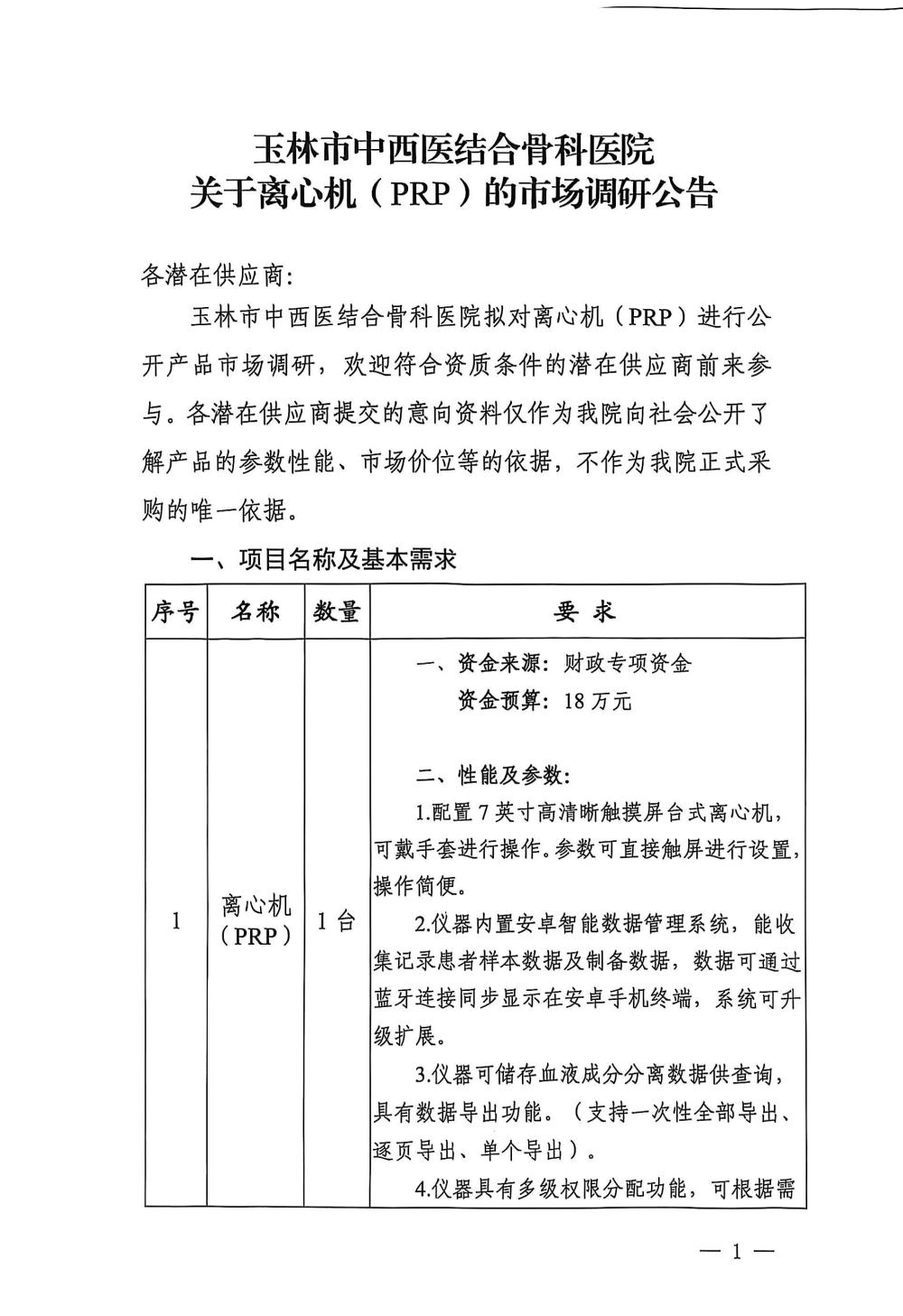 玉林市中西医结合骨科医院关于离心机(PRP)的市场调研公告