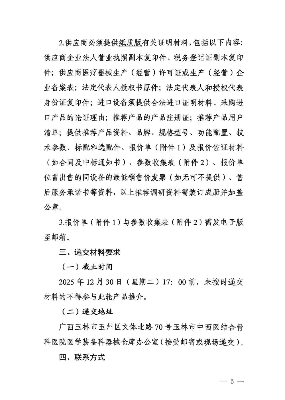 玉林市中西医结合骨科医院关于椎间孔镜镜头的市场调研公告