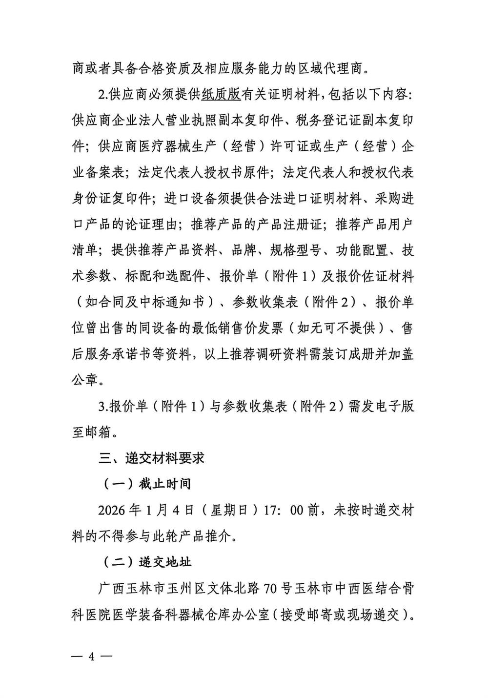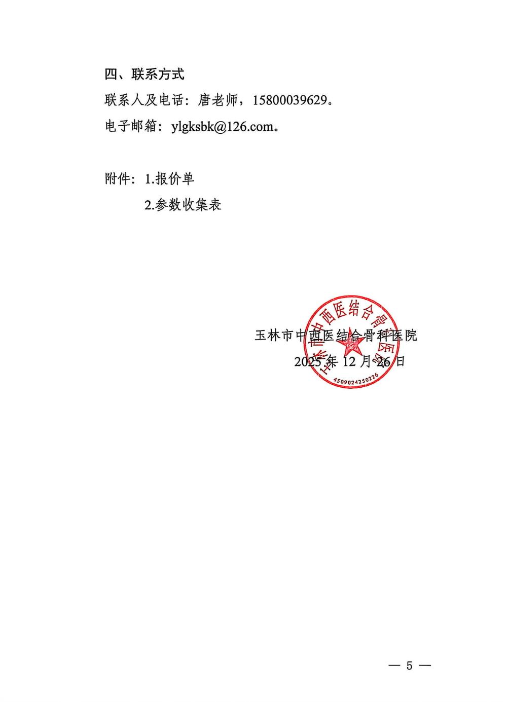 玉林市中西医结合骨科医院脊柱椎间孔镜微创手术器械采购项目采购公告