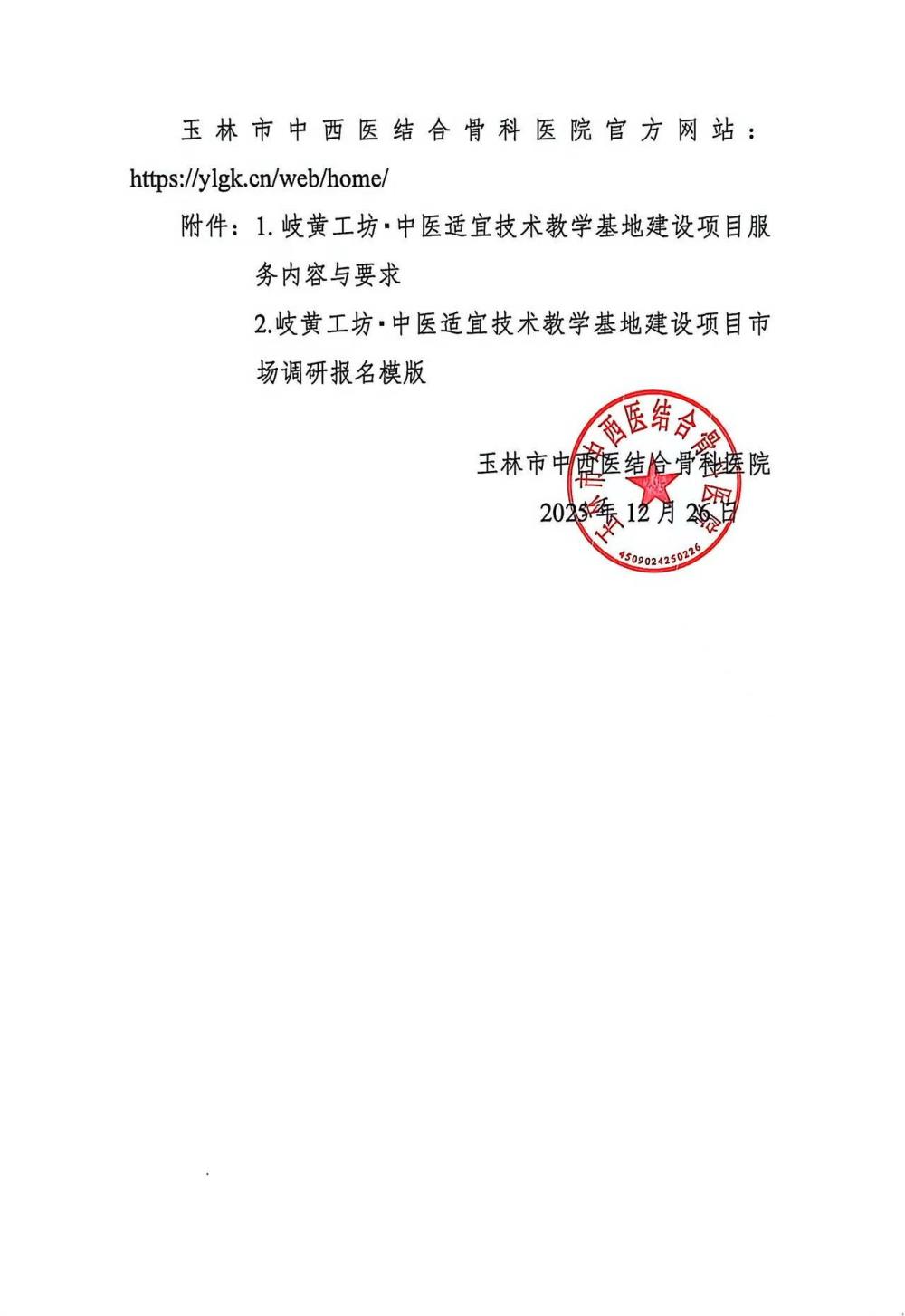 玉林市中西医结合骨科医院岐黄工坊・中医适宜技术教学基地建设项目市场调研公告