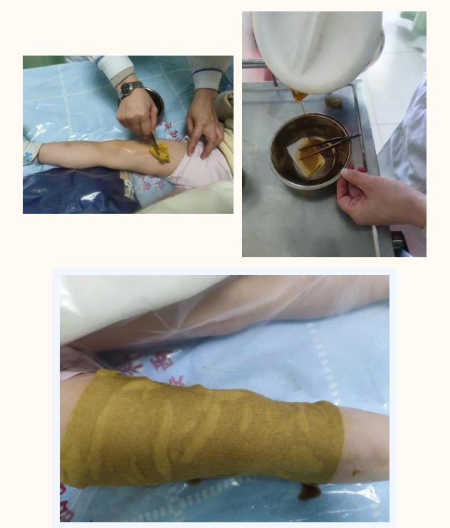 中药外敷以气味具厚药物为引,散结行滞,以直达病灶, 具有活血化瘀、祛瘀生新、开窍透骨等作用。中药外敷护 理通过将中药配方敷于有关穴位,增加局部血流量与血管 通透性,促使病灶周围血管扩张,血流加快,同时使得药物有效成分深入吸收,以加快局部炎症消退。