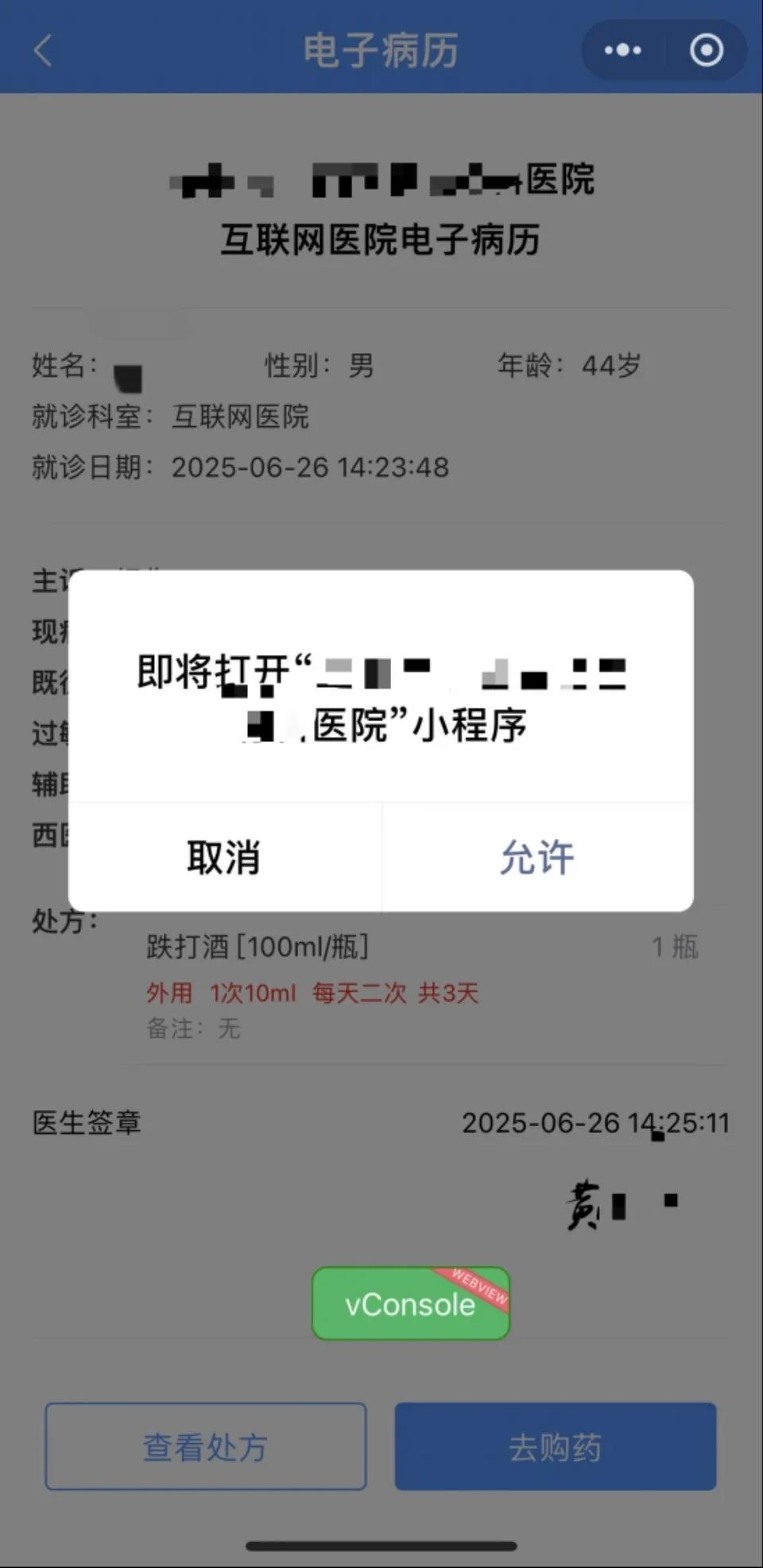 ③点击去购药/处方详情页点击“立即购药”—弹出跳转智慧医院小程序