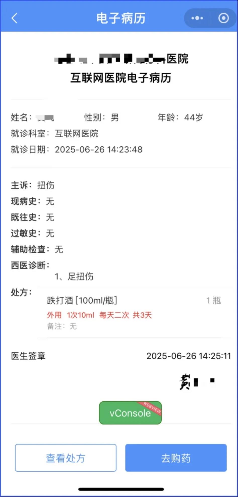医生开具处方后,患者可以选择在线支付并选择药品配送到家,足不出户即可购买我院院内药品。