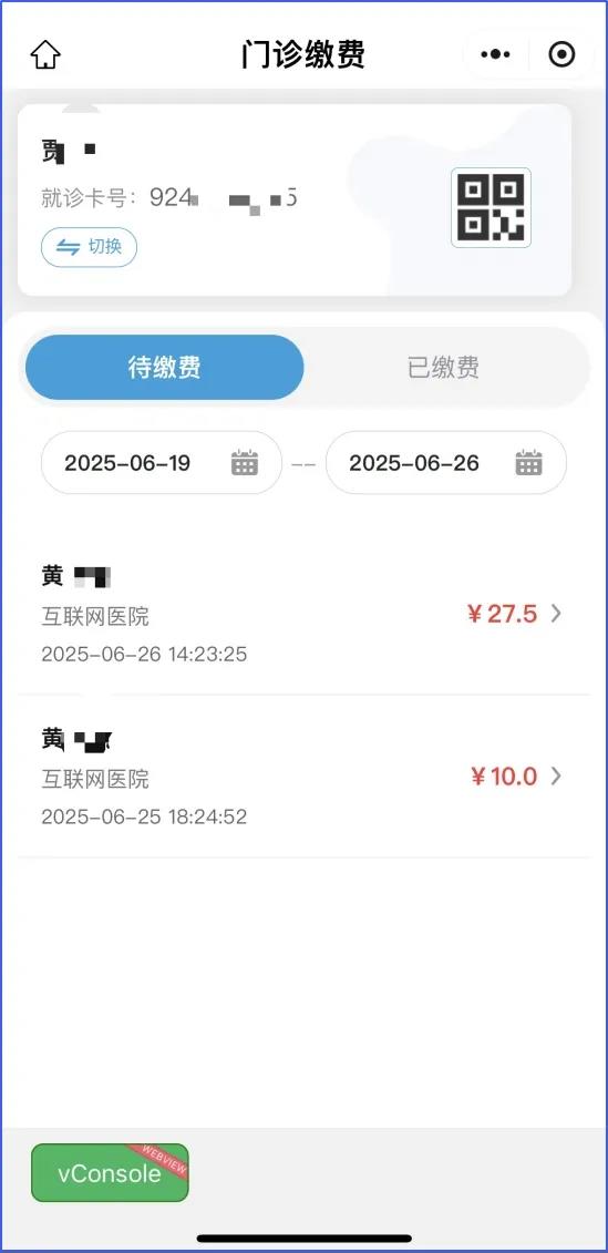 ④在智慧医院-门诊缴费-待缴费列表可查看医生开的处方