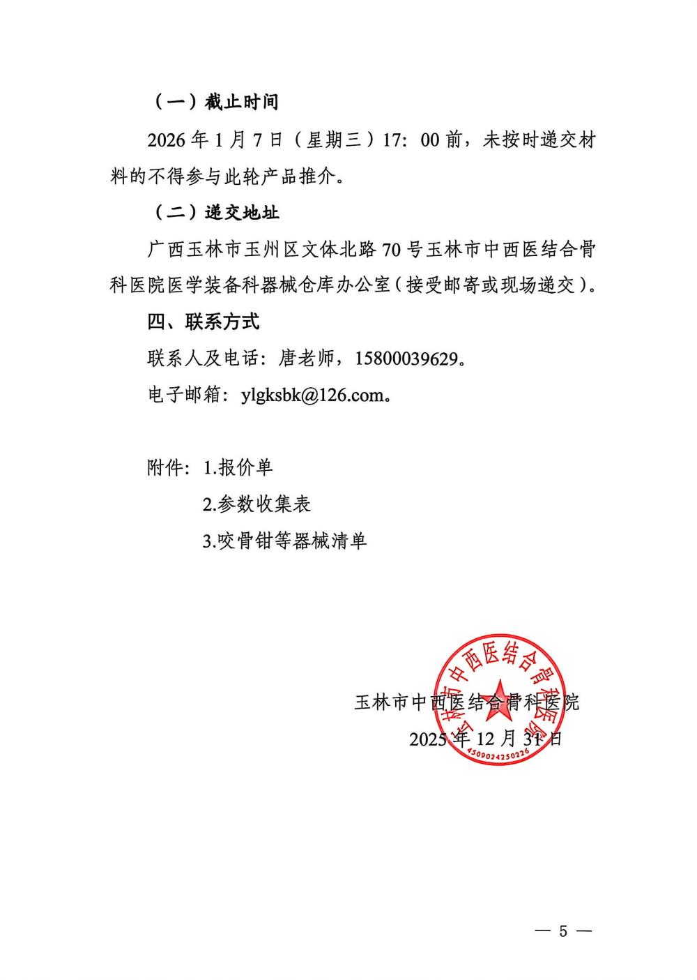 玉林市中西医结合骨科医院关于高清关节镜摄像系统与韧带重建工具的市场调研公告