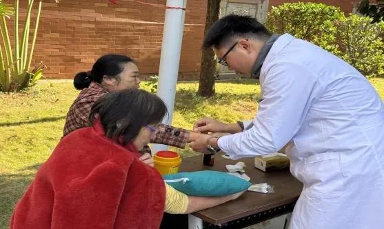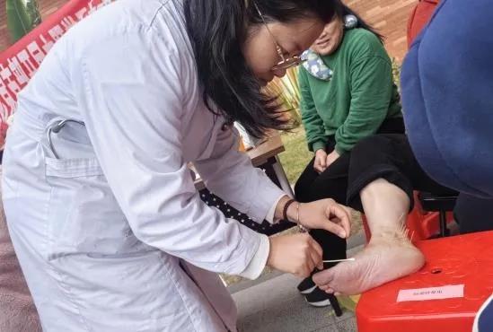 本次活动特别设置了三大板块:健康体检(测血压)、中医特色治疗项目(针灸、热敷包等)的展示与体验,以及一对一的中医健康咨询。现场由专业中医师提供的健康咨询服务,让居民亲身感受了中医适宜技术的魅力。医护人员使用本院自制的跌打酒,为现场群众进行涂擦与适度按摩。此法能促进局部气血运行、消散瘀血,有效帮助受损关节与肌肉恢复活动功能,让民众亲身体验中医外治法的即时缓解作用。针灸通过刺激特定穴位,能有效调节全身气血分布,疏通局部与整体的运行阻滞,从而缓解因气血不畅引起的疼痛、麻木等多种不适症状。我们为群众提供了针对眼部、颈部、腹部、腰部及鼻炎等多部位的中药热敷包。其功效融合了药力与热力,不仅能温通经络、散寒止痛、活血化瘀以解决“不通则痛”的问题,更能消肿散结、调和气血、健脾暖胃,实现整体调理。通过这些中医适宜技术充分发挥中医药在“治未病”、养生保健、慢病调理及康复方面的独特优势。