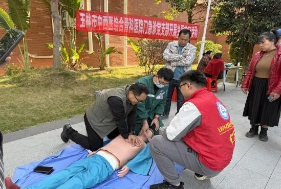为深入贯彻落实“健康中国”战略,响应“健康融入万家”号召,切实提升社区居民的健康素养与自救互救能力,同时弘扬与传承中医药文化瑰宝,玉林市中西医结合骨科医院急诊科于12月27日精心筹划,在锦绣里小区组织开展了“学急救技能,品中医智慧”主题义诊活动。