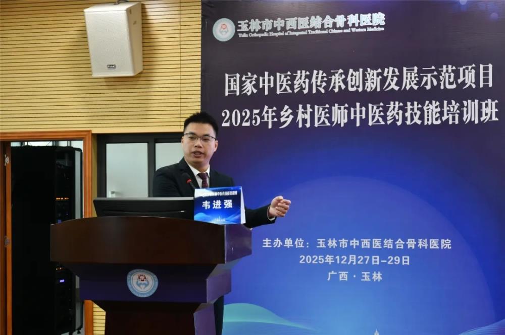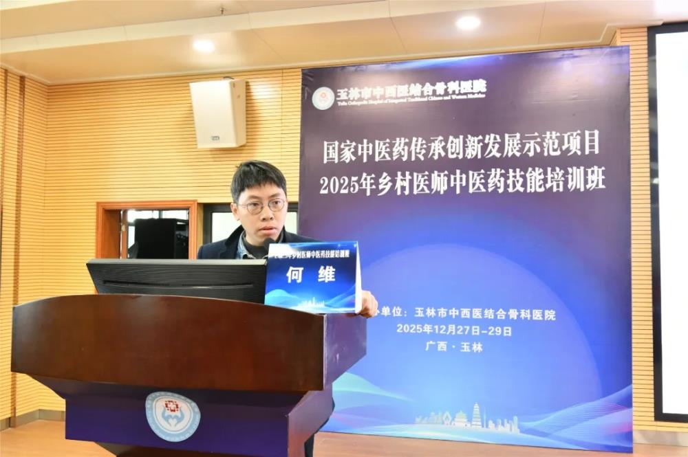 为深入贯彻国家中医药传承创新发展示范项目精神,切实提升基层乡村医师中医药服务能力,推广中医适宜技术,筑牢农村健康防护网,12月27日至29日,由玉林市中西医结合骨科医院主办的2025年乡村医师中医药技能培训班(适宜技术推广学习班)在该院圆满举办。来自容县、陆川县、福绵区的130名乡村医师齐聚一堂,通过“理论+实操”的系统培训,夯实中医药服务功底,助力中医药在基层落地生根。