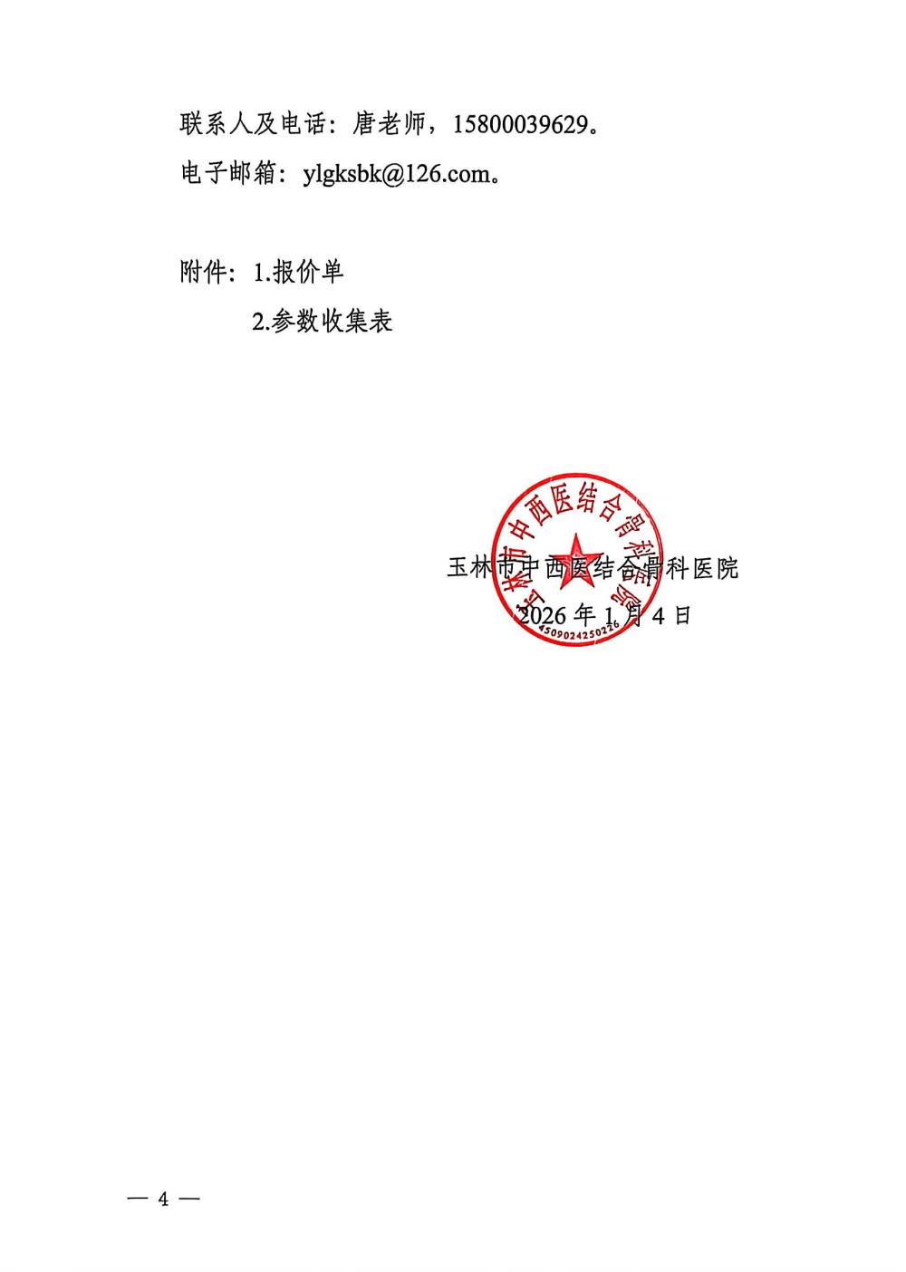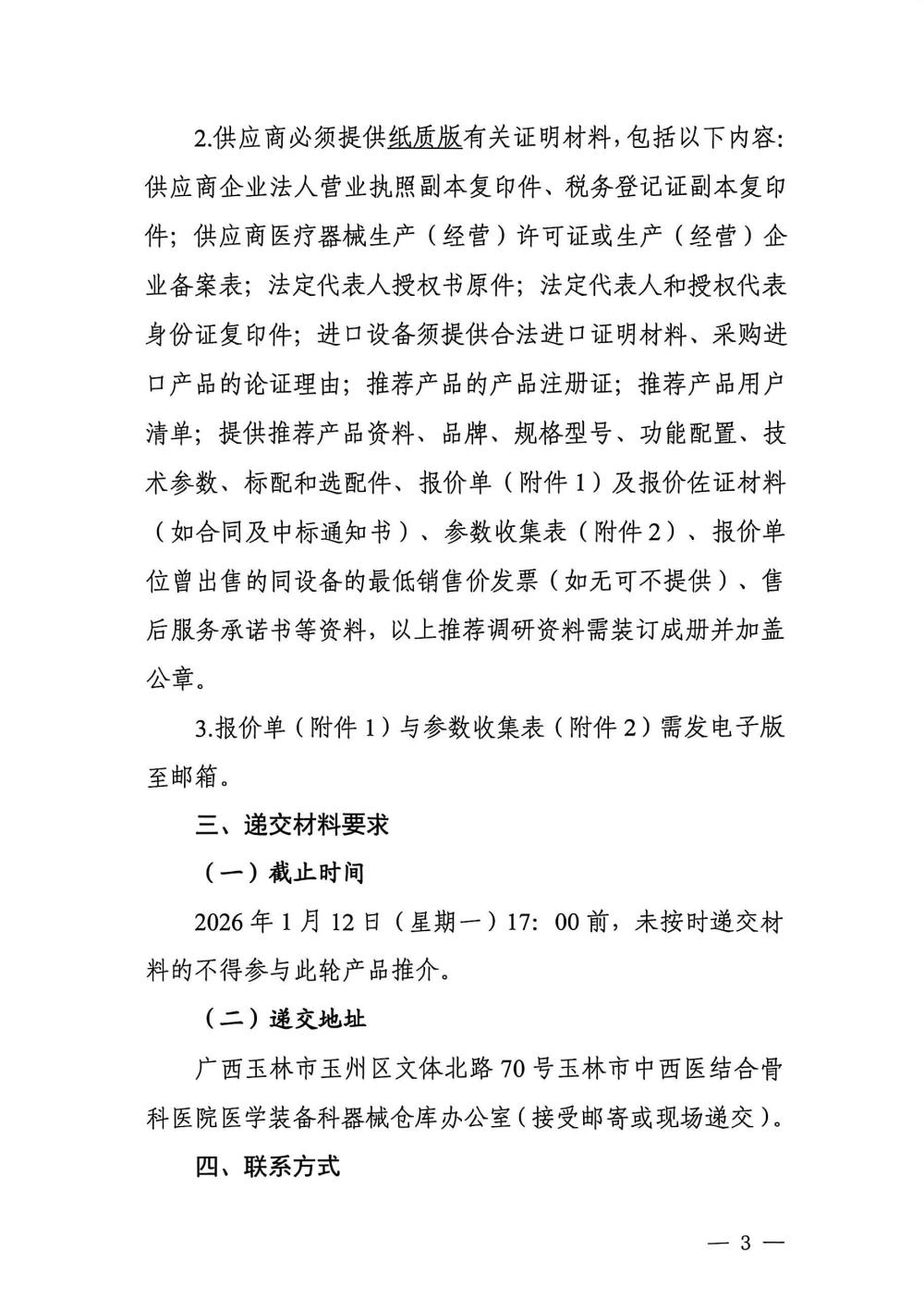 玉林市中西医结合骨科医院关于足踝一科设备的市场调研公告
