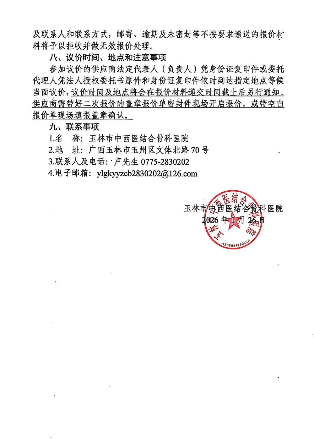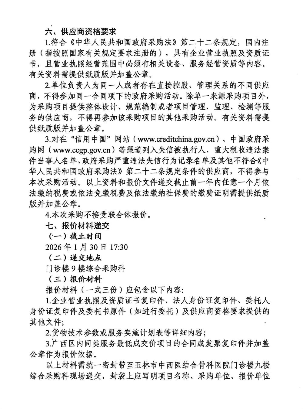 玉林市中西医结合骨科医院分析测量设备采购项目采购公告