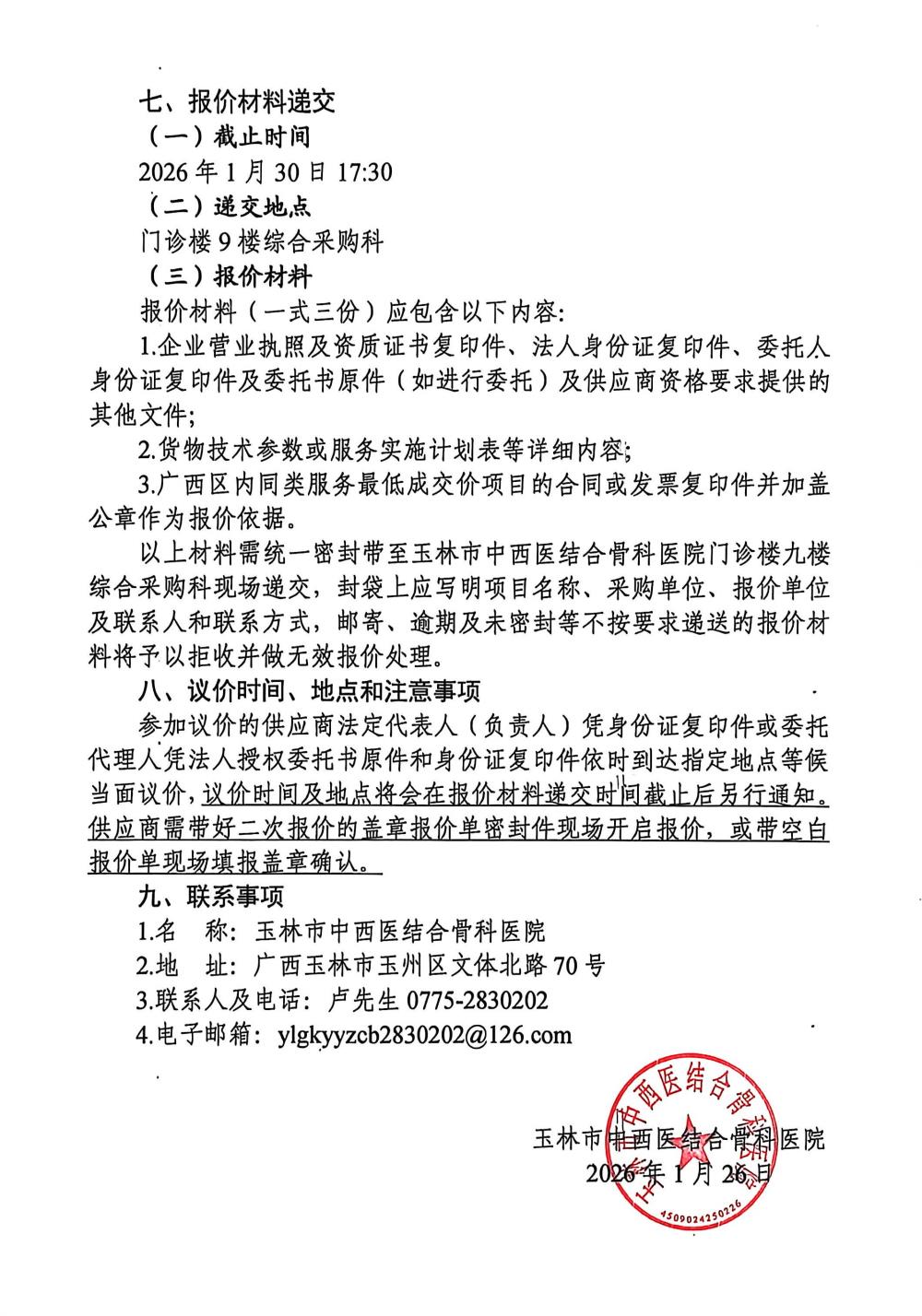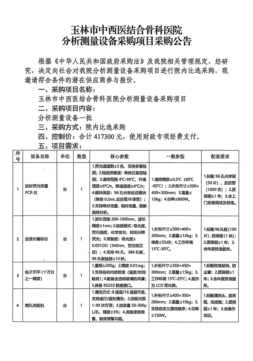 玉林市中西医结合骨科医院分析测量设备采购项目采购公告